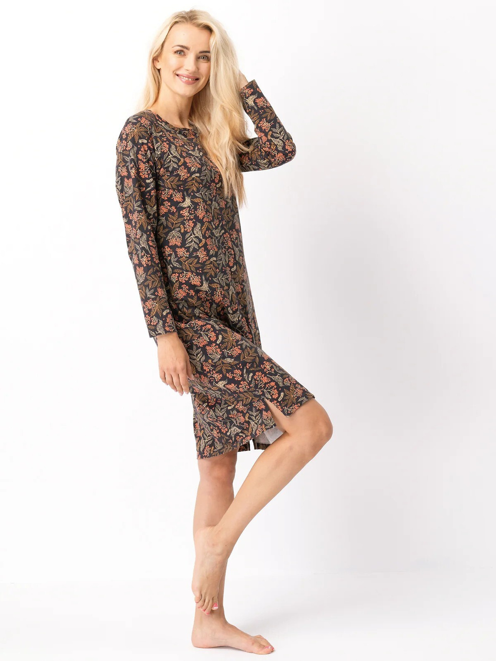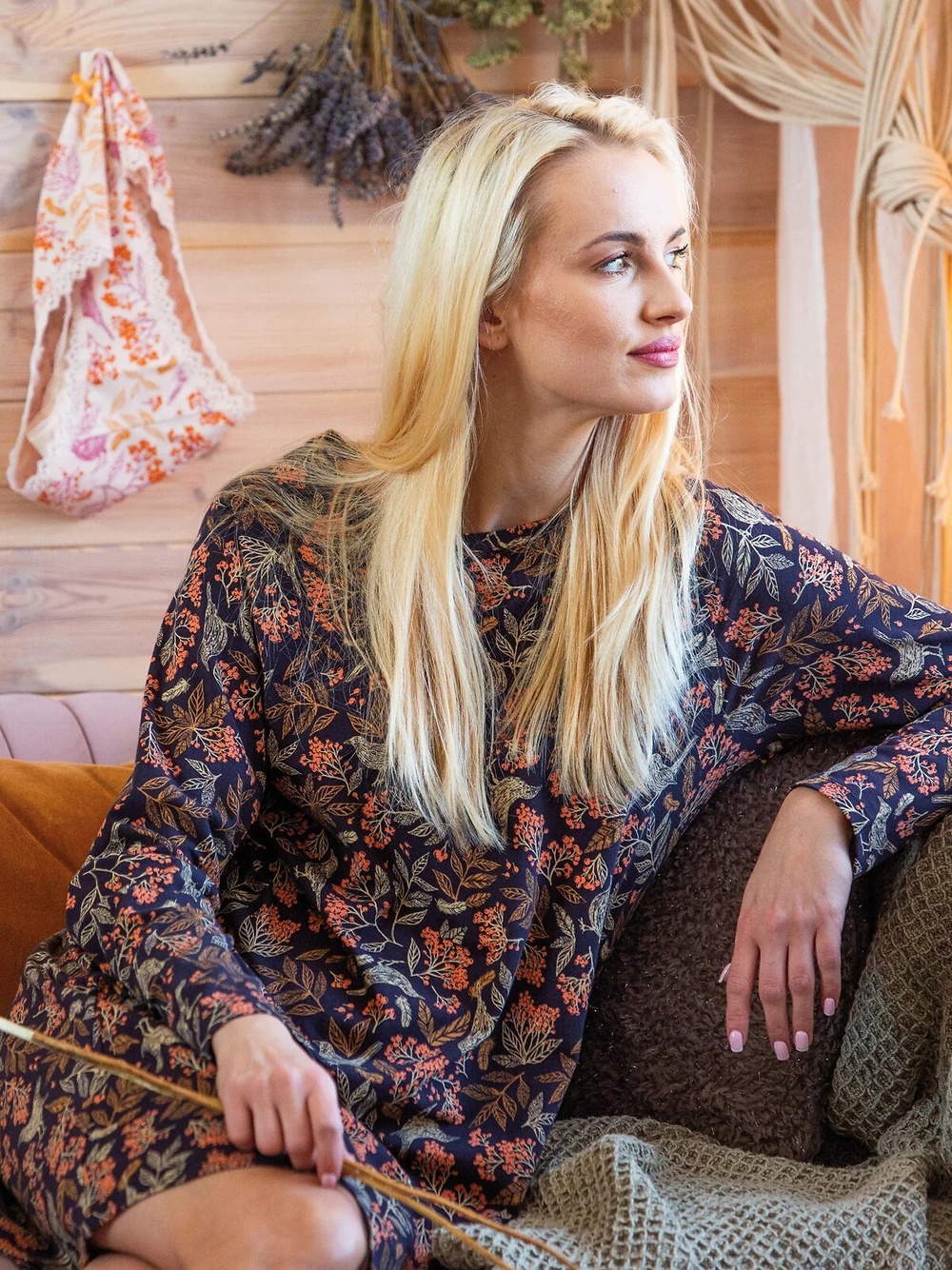 Koszula Key LND 785 B24 dł/r S-XL granatowy-kwiatki