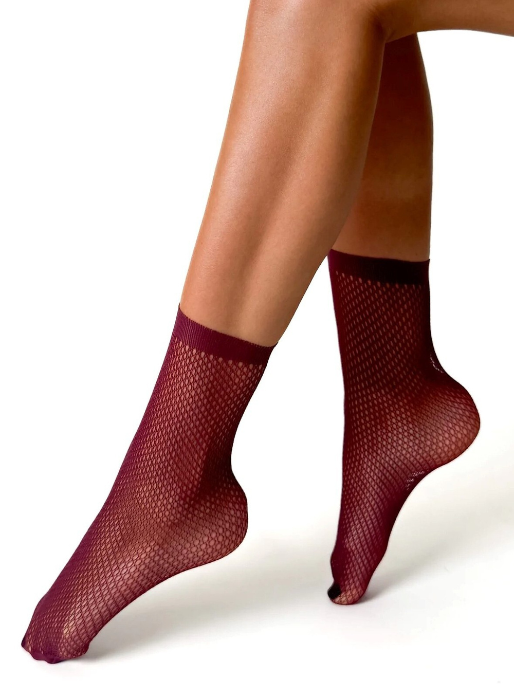 Skarpetki Veneziana Magica kabaretka bordeaux Skarpetki damskie z ażurowej dzianiny typu kabaretka