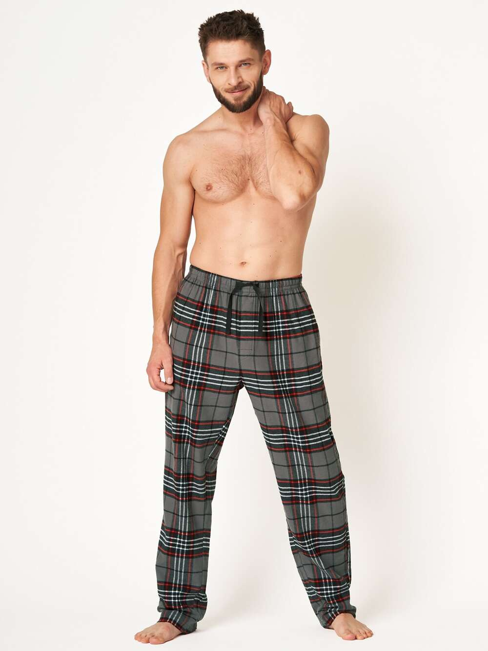 Spodnie piżamowe Key MHT 400 B24 M-2XL grafitowy-kratka Spodnie męskie do spania