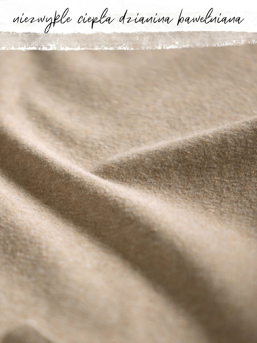 - miękka i miła w dotyku dzianina, obustronnie drapowana
