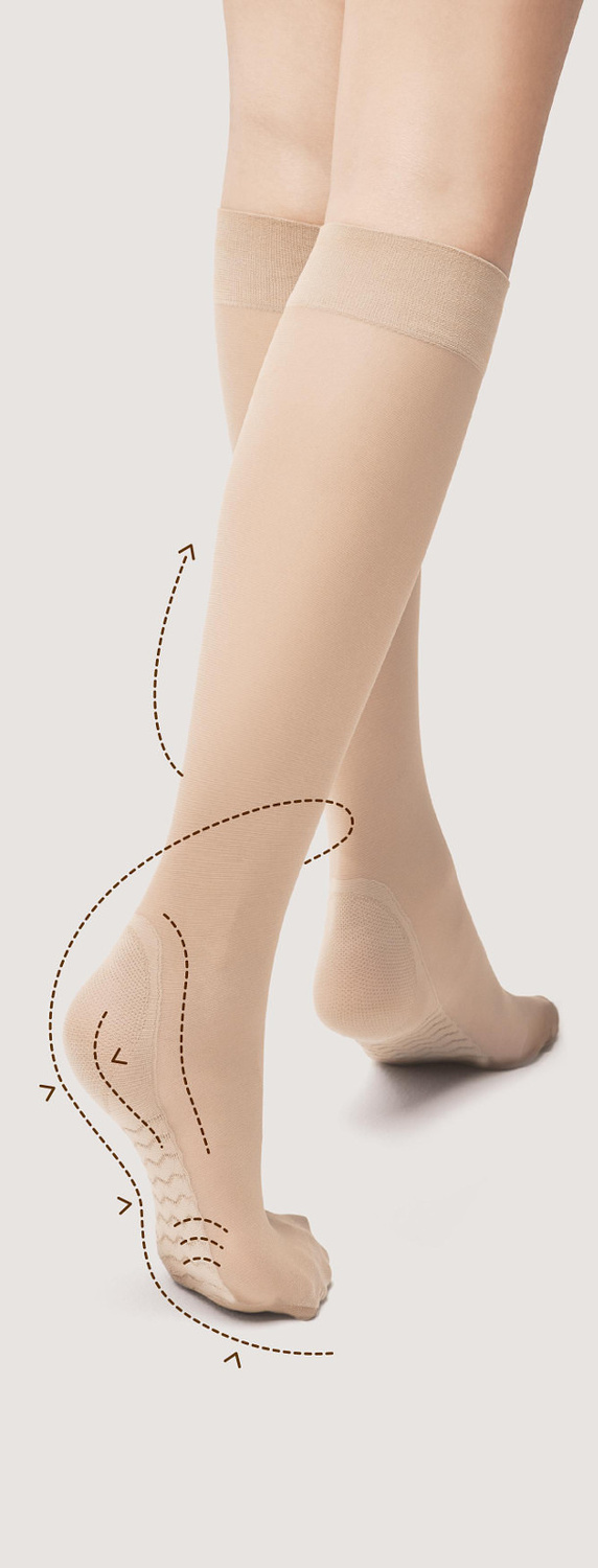 - z profilaktycznym efektem masażu stóp i z bezuciskowym ściągaczem