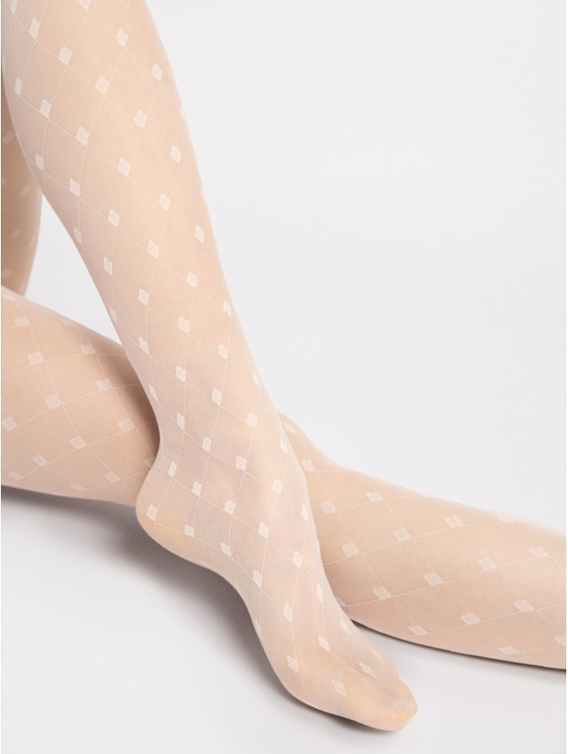 Rajstopy damskie - ozdobione delikatnym wzorem - grubość 15 den - bez zaznaczonej części majtkowej - brak wzmocnień na palcach - z małym klinem Skład: 90% poliamid, 10% elastan