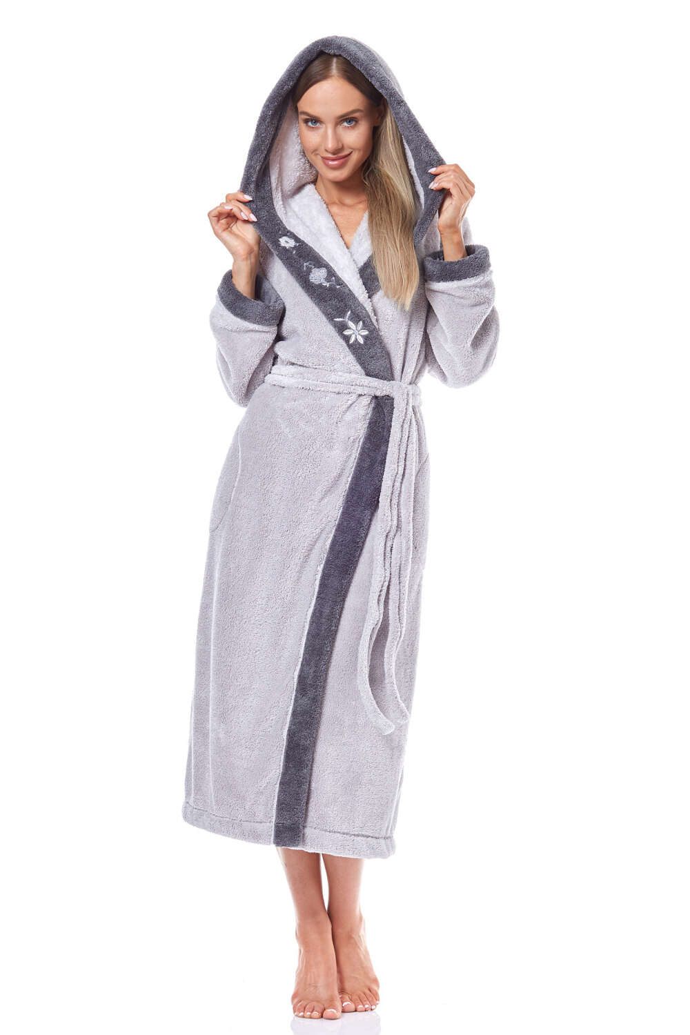 - z miękkiej dzianiny z kapturem