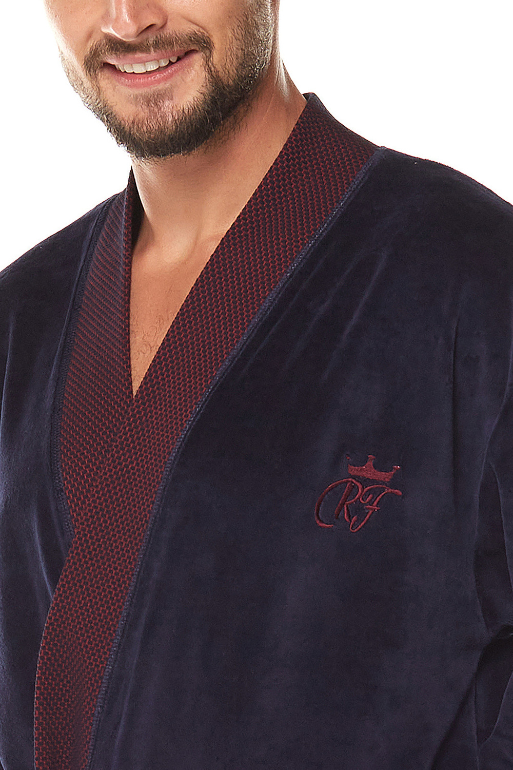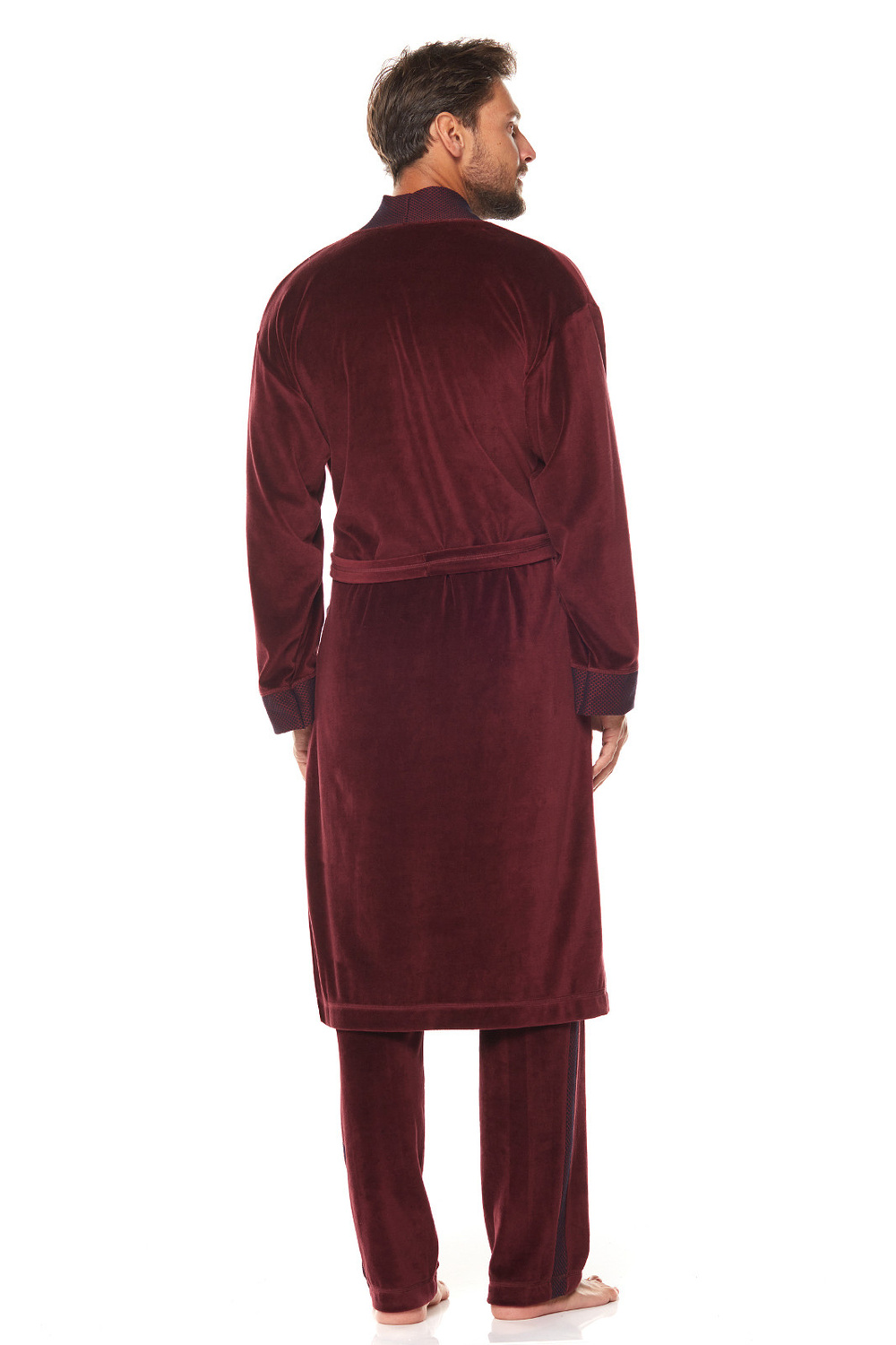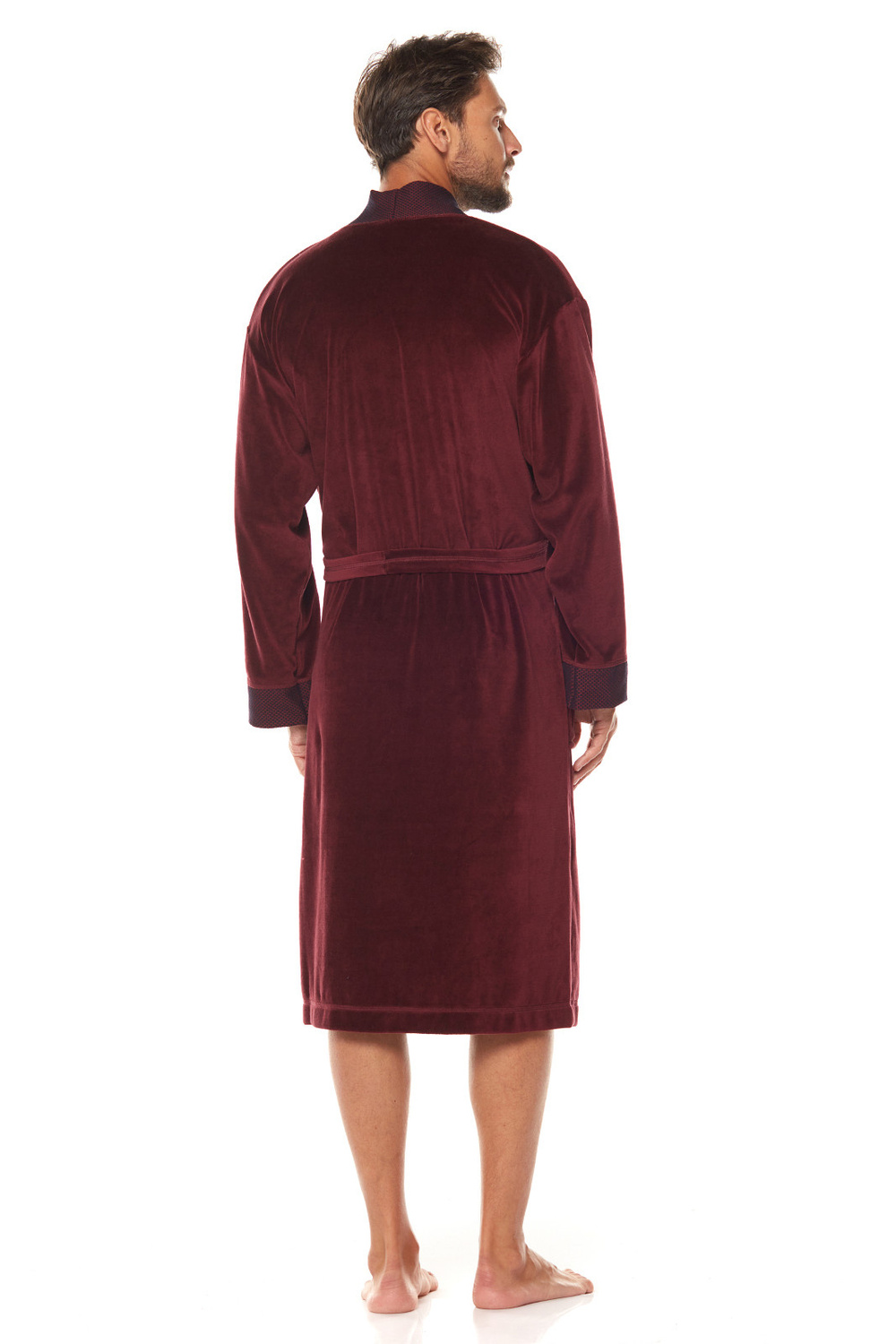 Szlafrok L&L 2050 Royal M-2XL męski bordowy Welurowy szlafrok męski