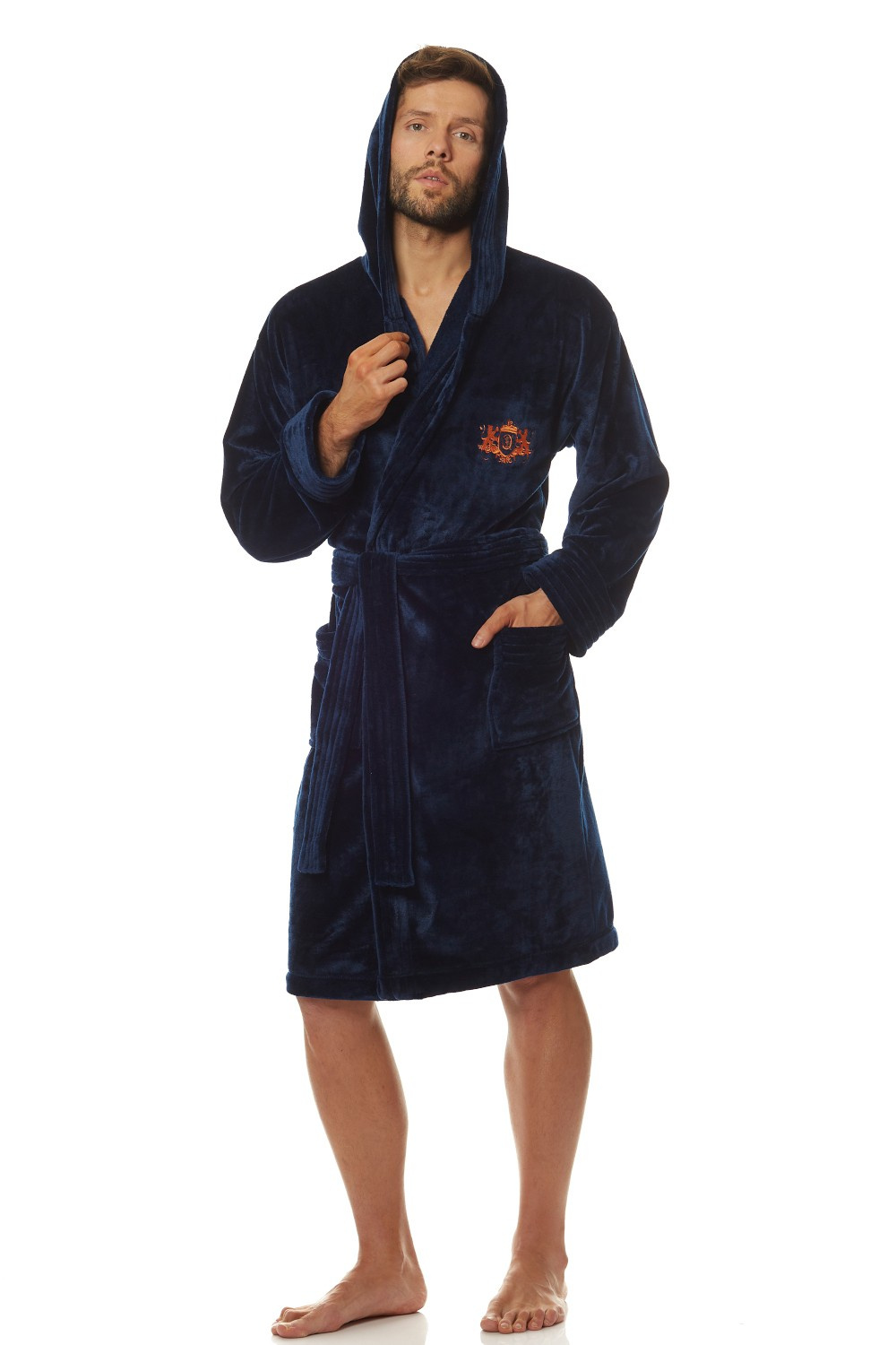 Szlafrok L&L 2110 Costa M-2XL męski navy Szlafrok męski z kapturem