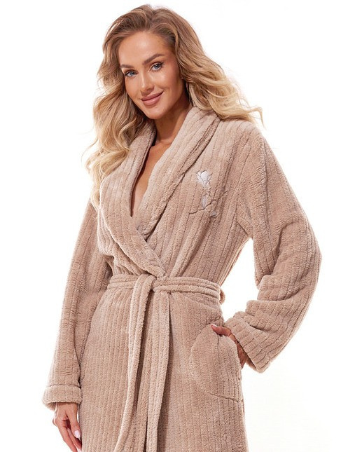 Szlafrok L&L 2323 Monique długi S-2XL damski ecri Długi szlafrok damski