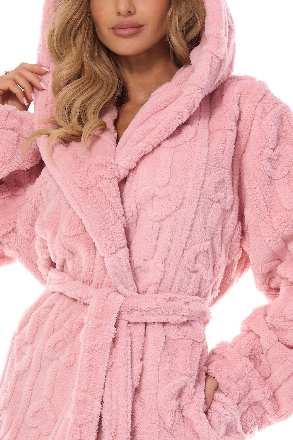 Szlafrok L&L 2403 Carina S-XL damski różowy pudrowy Krótki szlafrok damski z kapturem