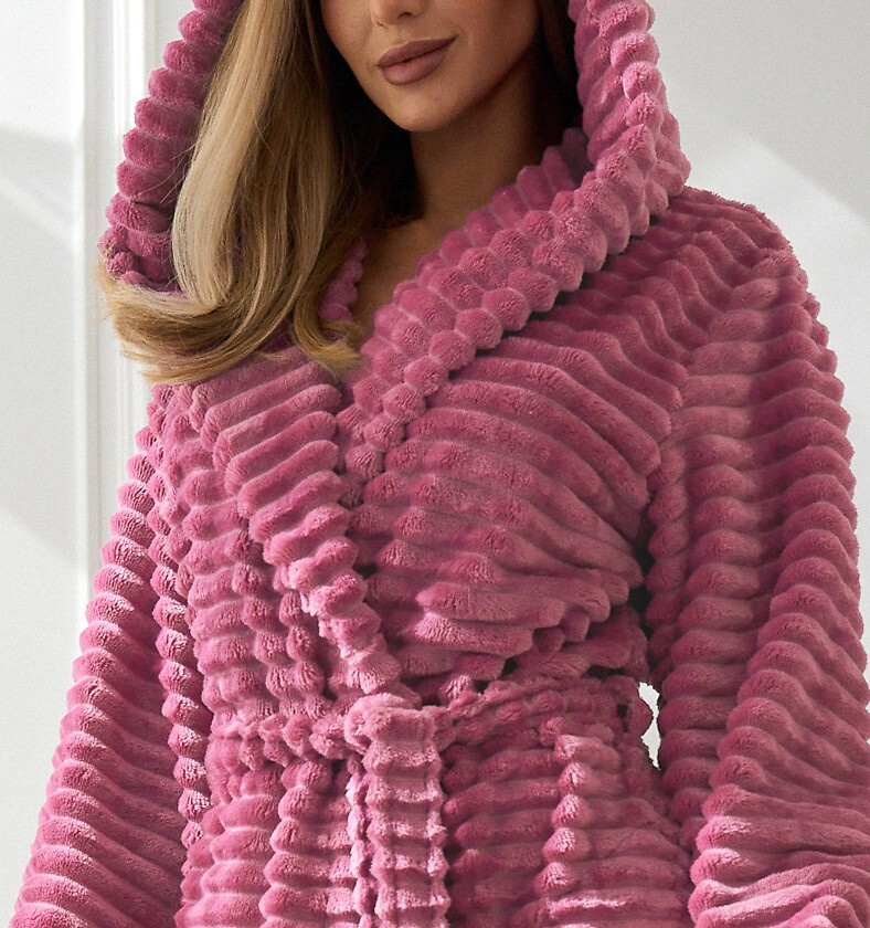 Szlafrok L&L 2416 Robin S-XL damski morelowy Krótki szlafrok damski z kapturem