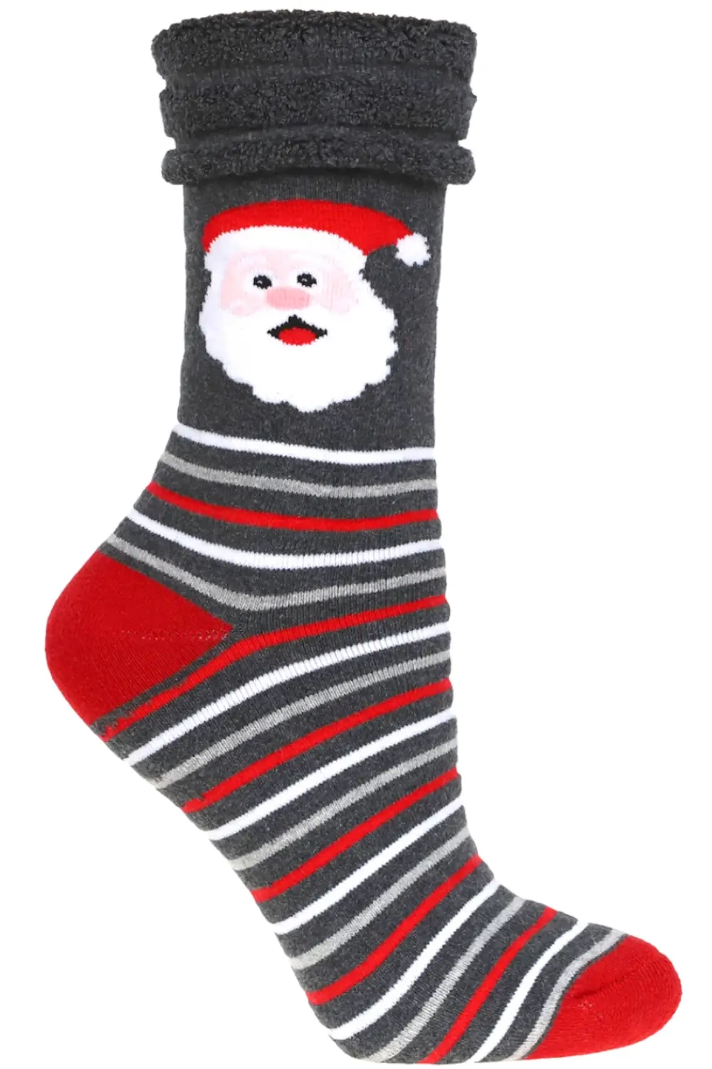 Skarpetki świąteczne CSL450-036 Mikołaj, szaro-czerwone