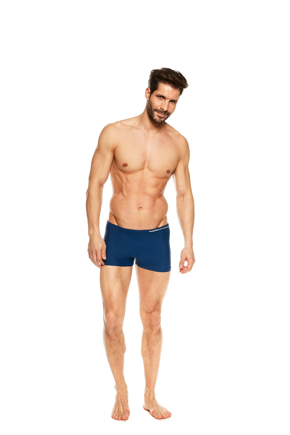 Kąpielówki męskie z wysokiej jakości mikrofibry- w pasie ozdobny nadruk- bokserki od wewnętrznej strony posiadają siateczkowe slipy, które pozwalają zachować komfort podczas aktywnego dnia- w pasie sznureczek do regulacji obwoduSkład: 80% poliamid, 20% elastan; podszewka 92% poliamid, 8% elastan