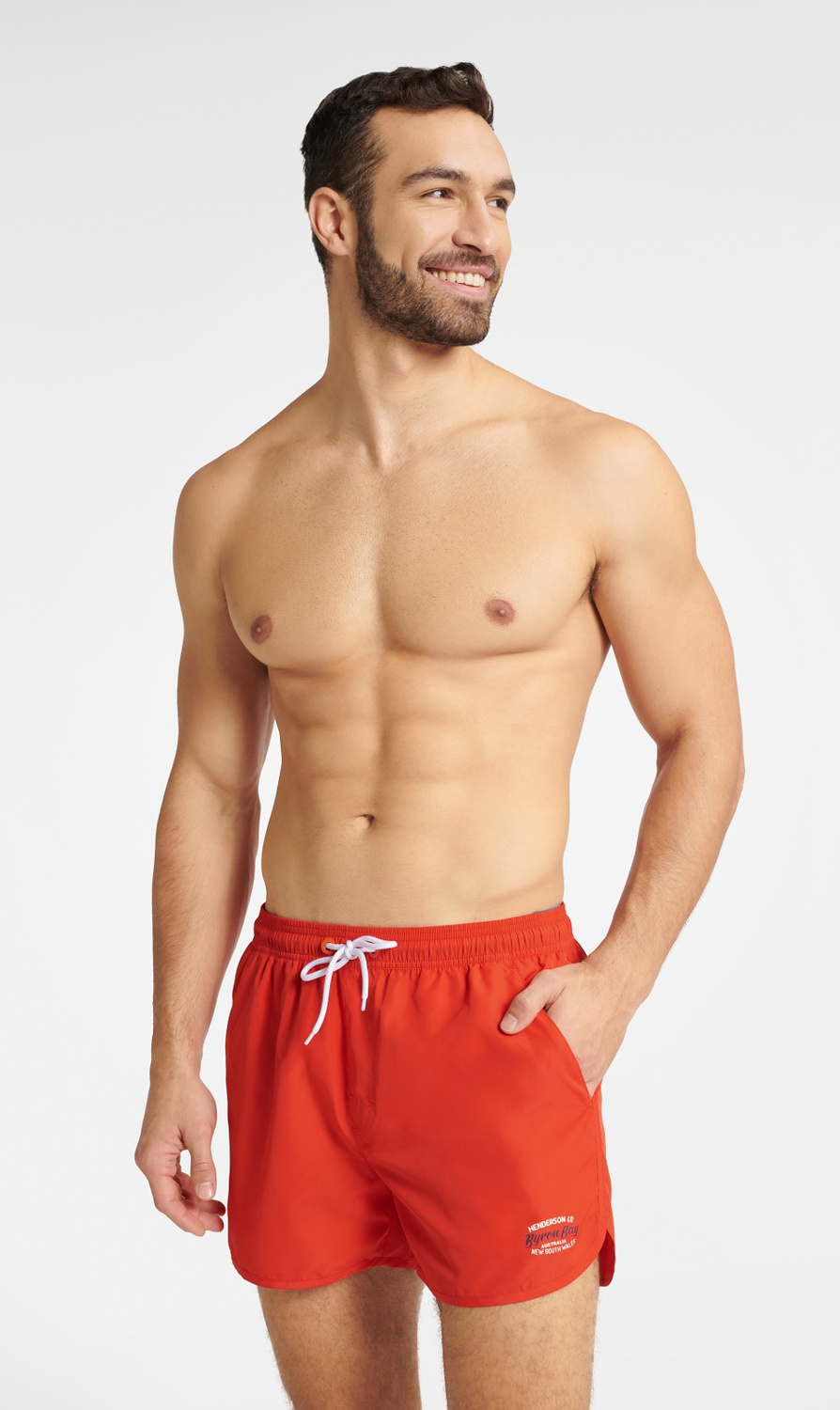 Szorty kąpielowe Henderson 40778 Guild M-2XL red Szorty kąpielowe męskie- cienka, szybkoschnąca tkanina- od wewnętrznej strony wszyte slipy z siateczki- z kieszeniami- w pasie gumka i troczek do regulacji wiązania