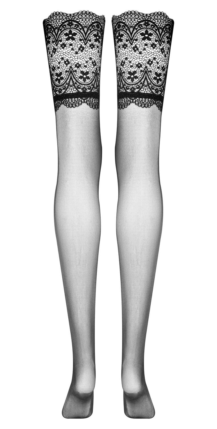 Pończochy do pasa Obsidian Stockings to kwintesencja elegancji i zmysłowości. Wykonane z delikatnego, transparentnego materiału, który zmysłowo otula nogi, połączone z wyrazistą koronką na górze, tworzą wyjątkowy efekt wizualny.