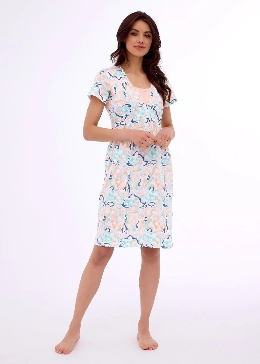 Krótka koszula damska - dla Mam karmiących - wysokiej jakości bawełna - krótki rękaw - wygodne rozcięcia na biuście, ułatwiające karmienie Skład: 100% bawełna