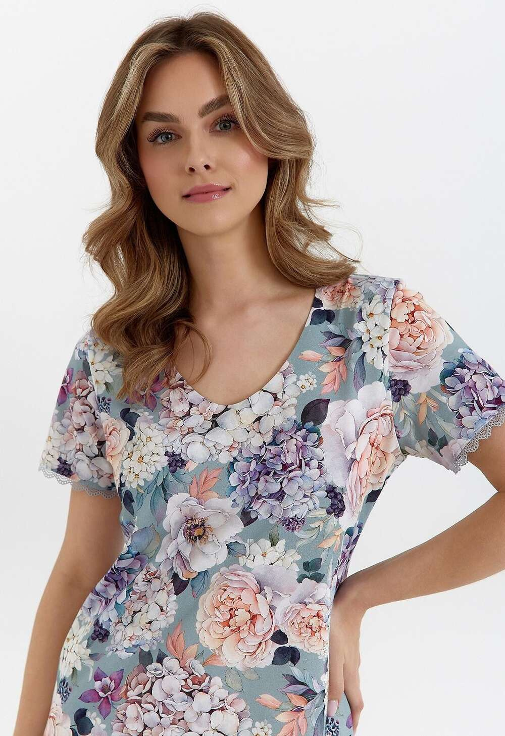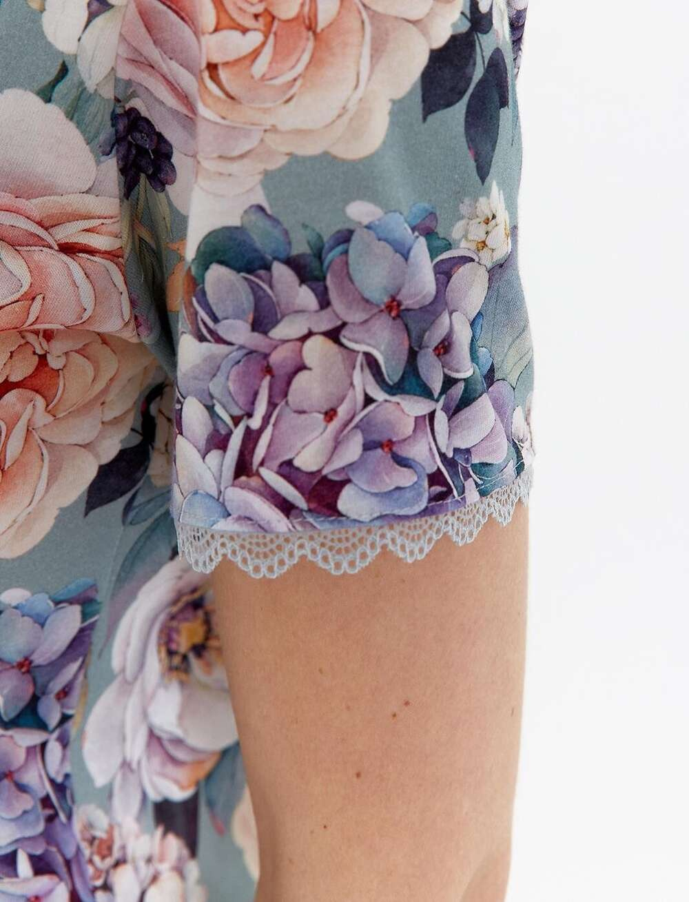 - wysokiej jakości bawełna ozdobiona pastelowymi kwiatami