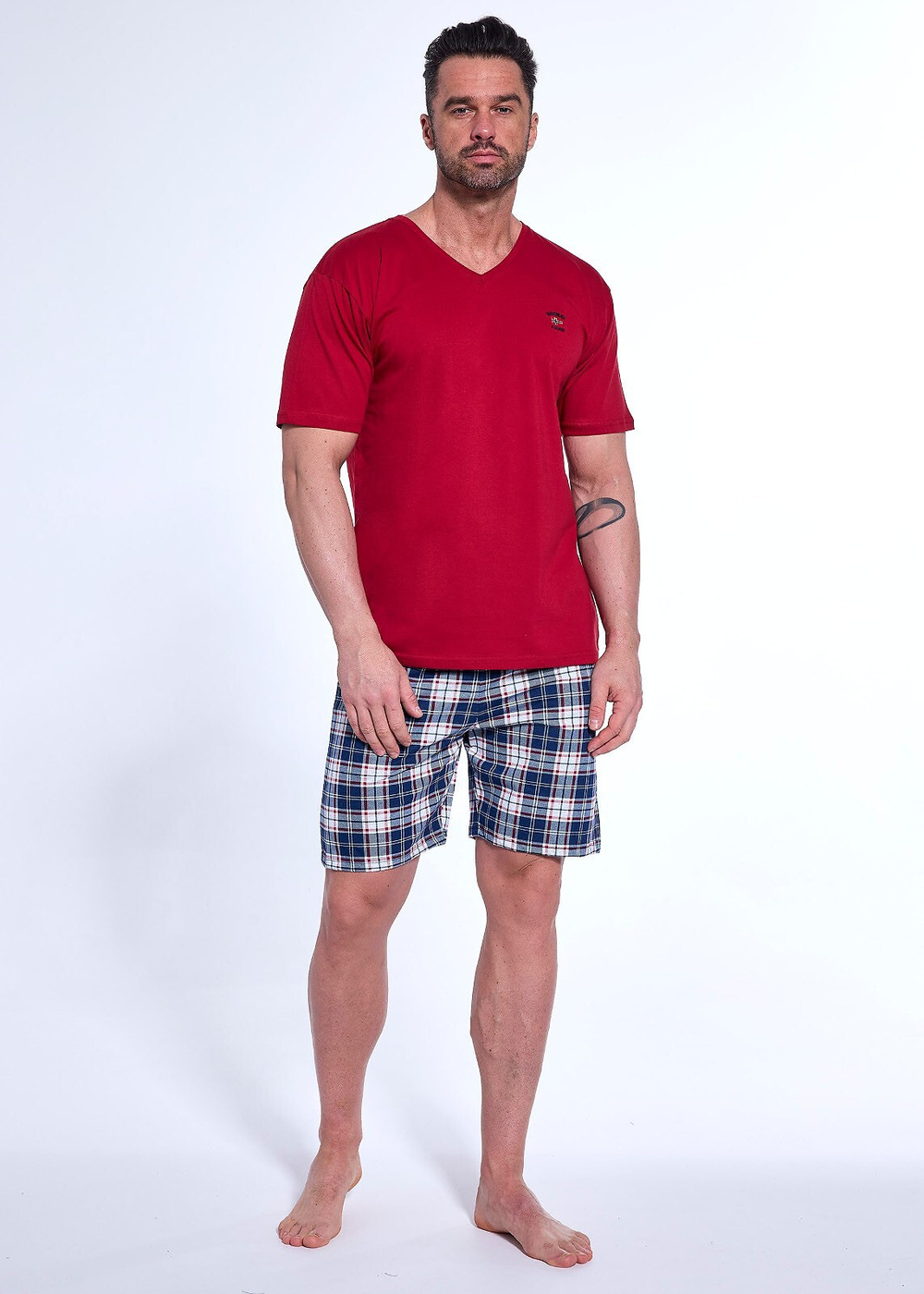 - spodenki krótkie, w kratkę