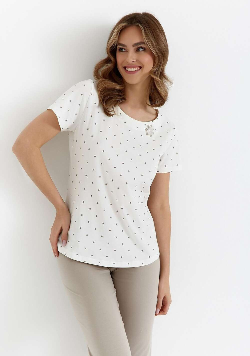 - dekolt okrągły ozdobiony naszytym kwiatuszkiem