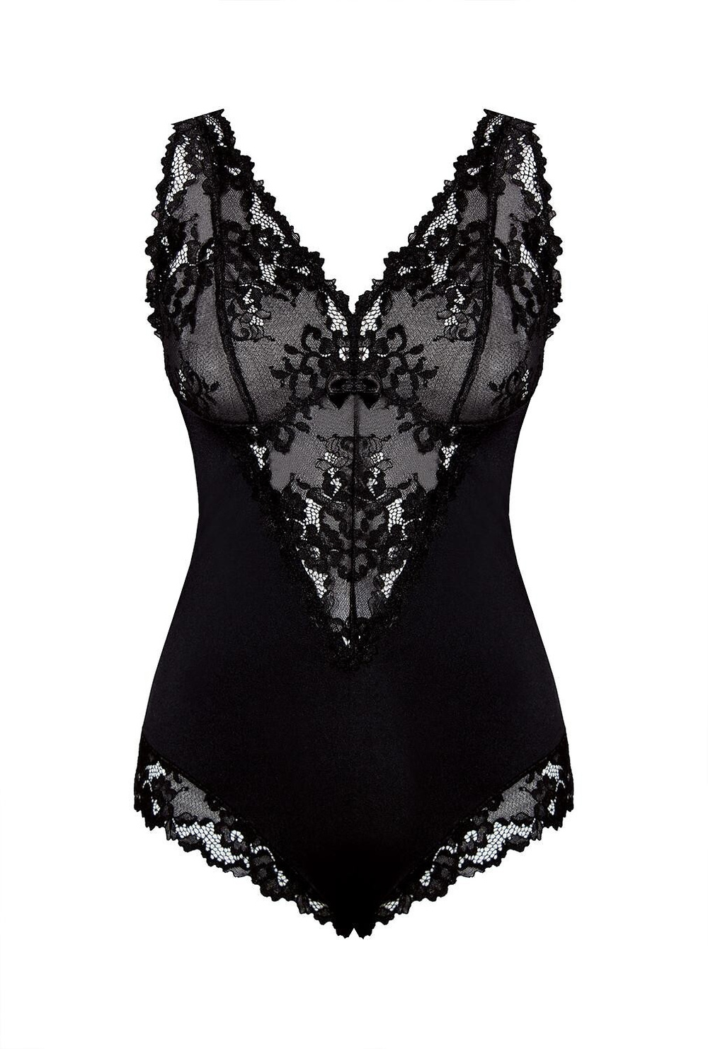 - z gładkiej mikrofibry i efektownej ażurowej koronki o kwiatowym motywie