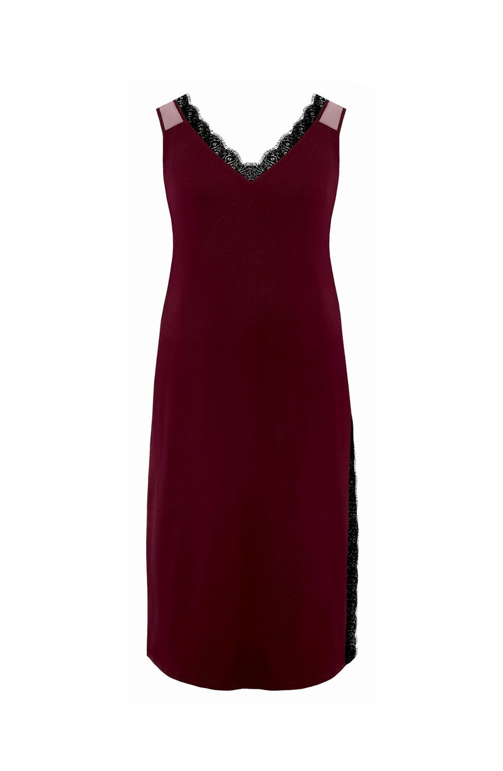 Koszula damska - z delikatnej wiskozy - z dużym dekoltem obszytym ażurową koronką - ramiączka i plecy zdobi tiulowa siateczka - bok z efektownym rozcięciem Skład: 70% wiskoza, 14% poliamid, 8% elastan, 8% inne włókna