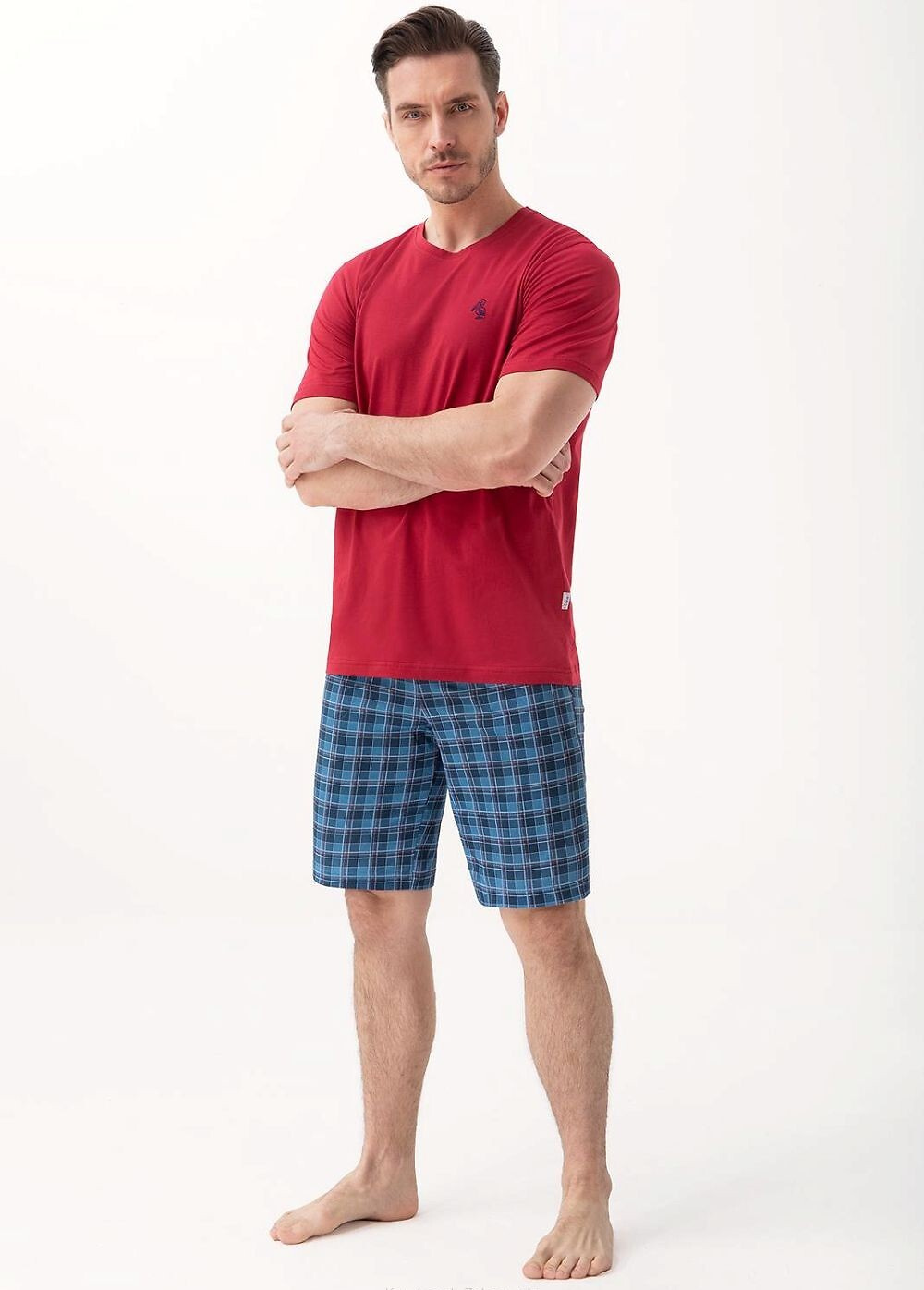 Piżama Luna 803 kr/r M-2XL męska niebieski-kratka Piżama męska