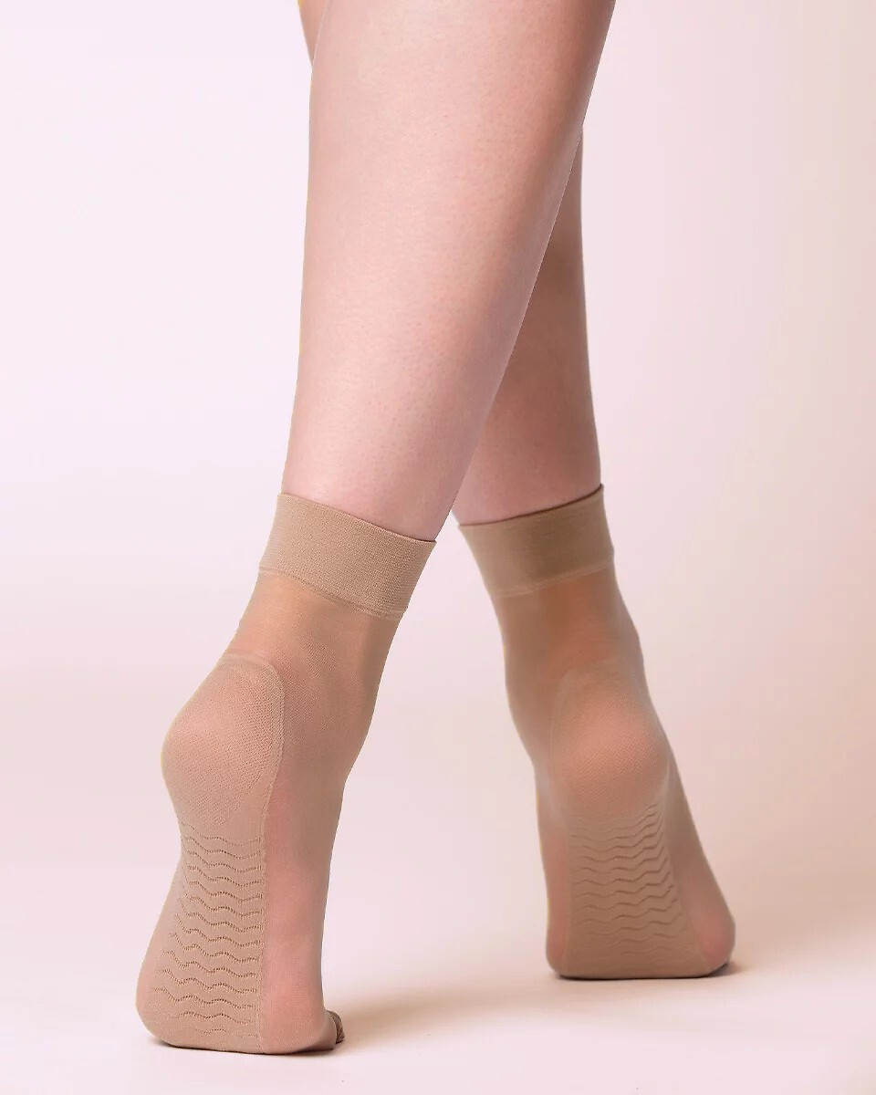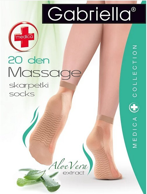 Skarpetki damskie 20 den - wykonane z elastycznych włókien - z nieuciskającym ściągaczem - profilowana stopa - specjalnie skonstruowana część na podeszwie stopy - efekt masażu stopy - wspiera działanie antyżylakowe - kojący ekstrakt z aloesu   Skład: 85% poliamid, 15% elastan