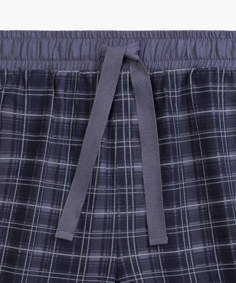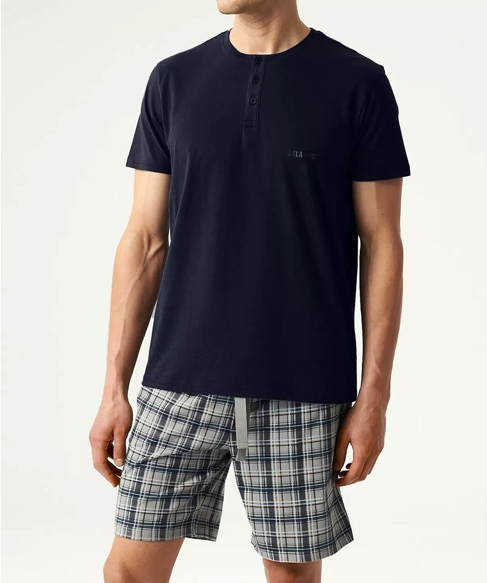 Piżama męska - wysokiej jakości bawełna z efektem "pech effect" (od zewnątrz pokryta maleńkimi puszystymi włoskami, w dotyku przypominającymi skórkę brzoskwini) - koszulka z krótkim rękawem - dekolt zapinany na trzy guziczki - na piersi nadruk z logo ATLANTIC - krótkie, luźne spodenki - wzór w kratkę - po bokach wygodne kieszenie - w pasie sznurek do regulacji obwoduSkład: 100% bawełna