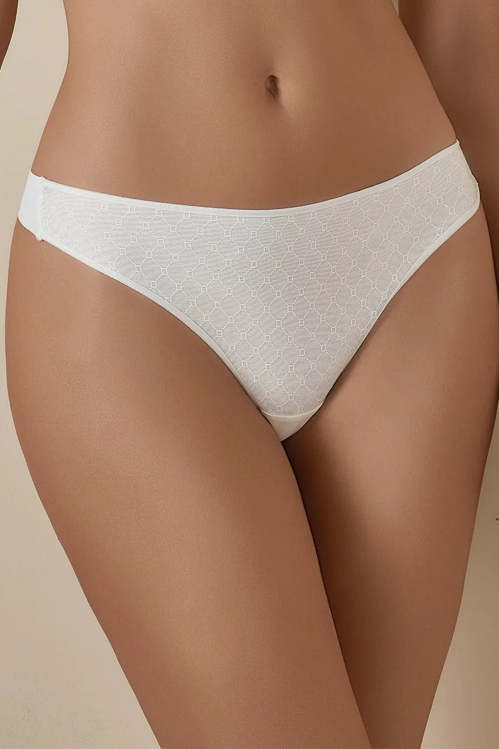 Cięte laserowo eleganckie stringi KATIA, marfil-perła