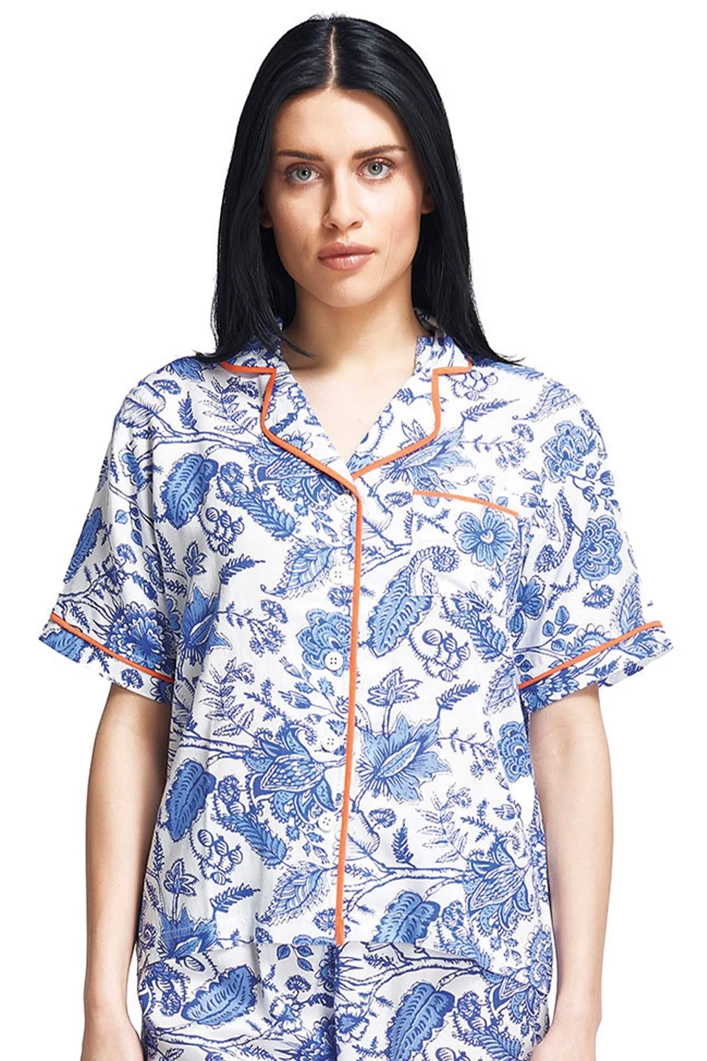 Koszulowa piżama z krótkim rękawem i długimi spodniami Atrani, 100% wiskoza (pomarańcz)