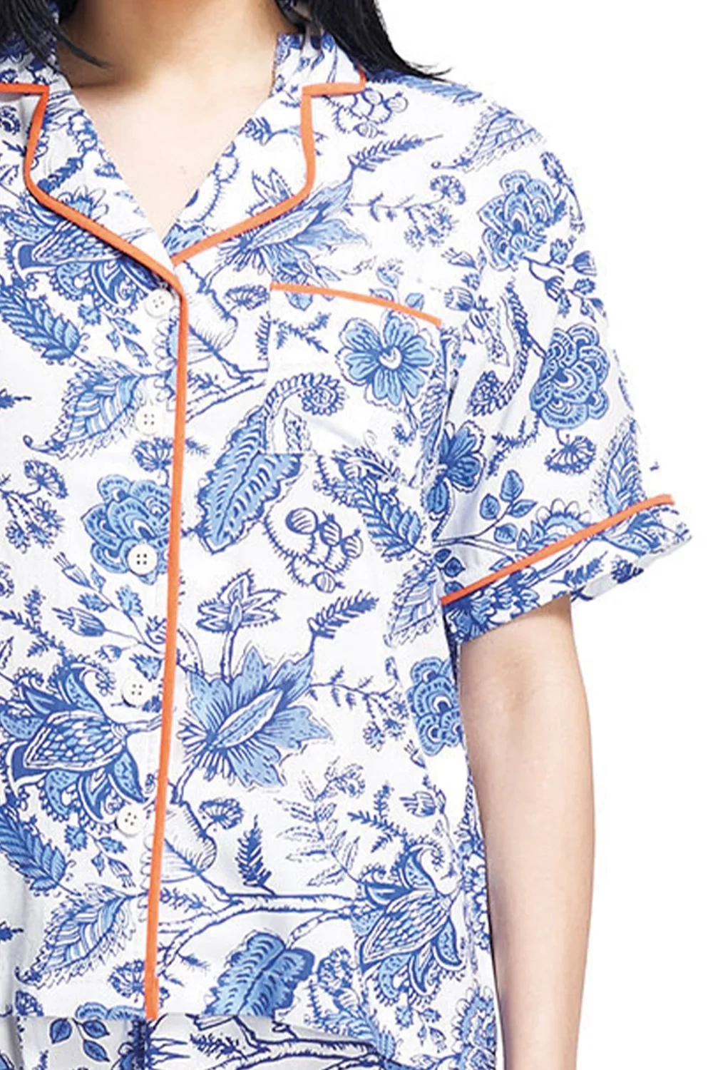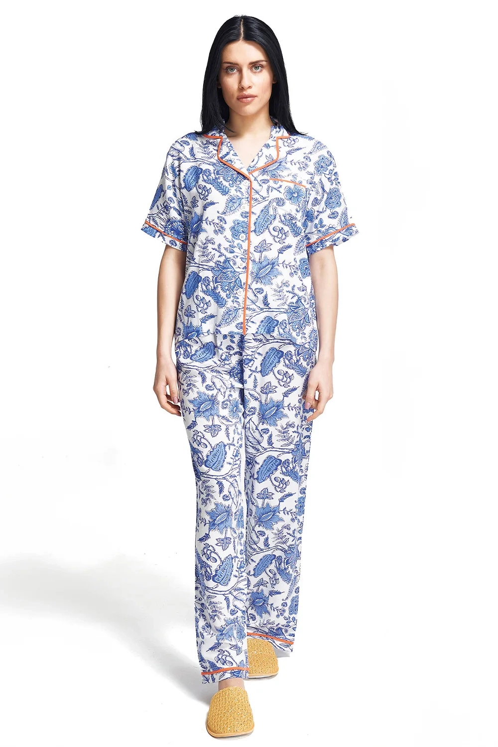 Idealny krój: Klasyczna, rozpinana koszula z krótkim rękawem i luźne palazzo spodnie z gumką w pasie gwarantują pełną wygodę i swobodę przez całą noc.