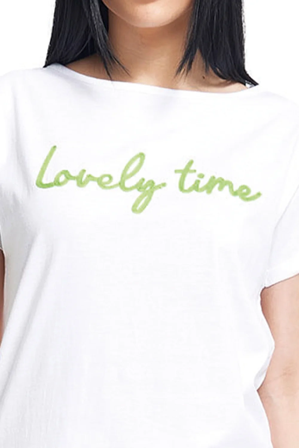 Oryginalne detale: Na koszulce modny haft w limonkowym