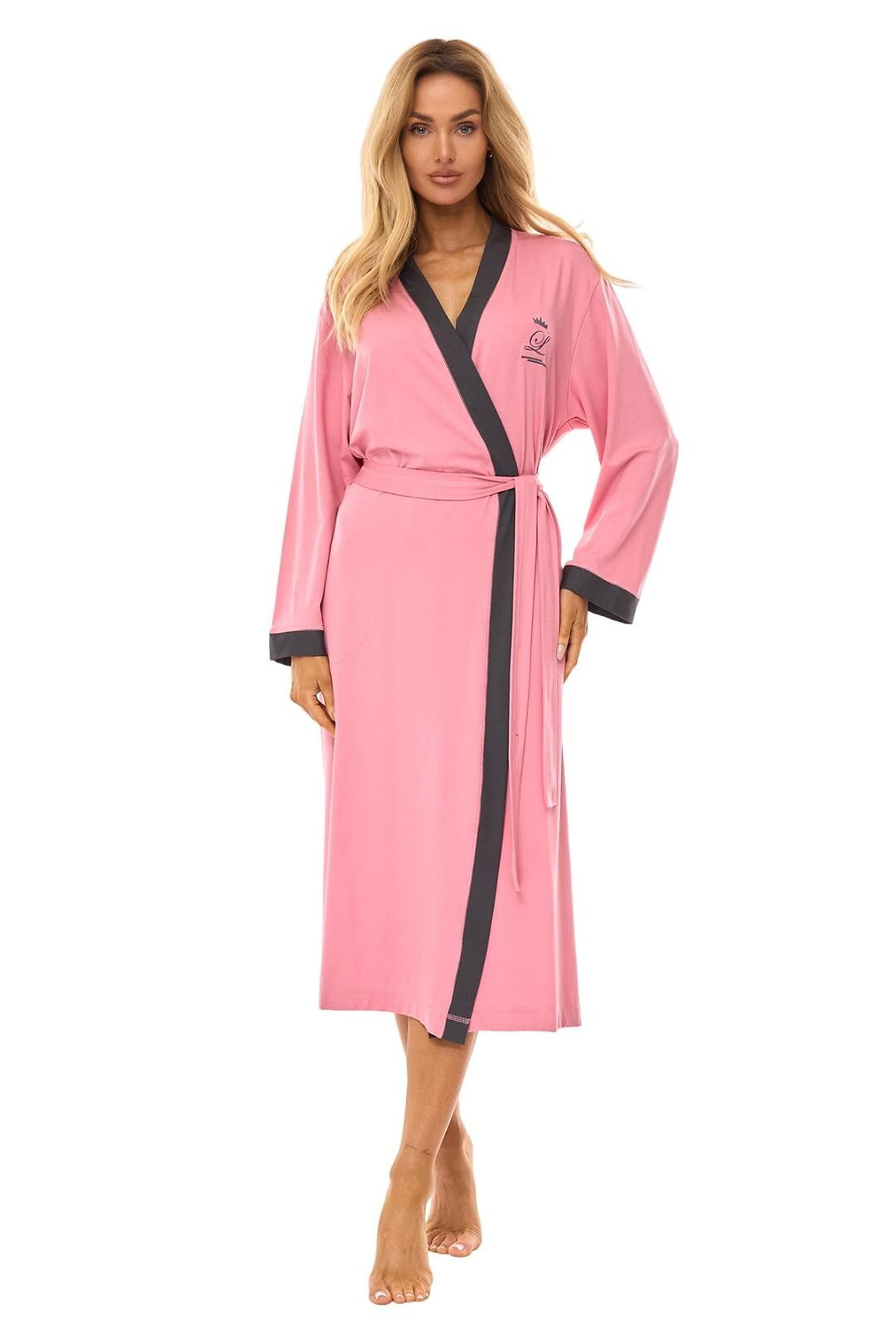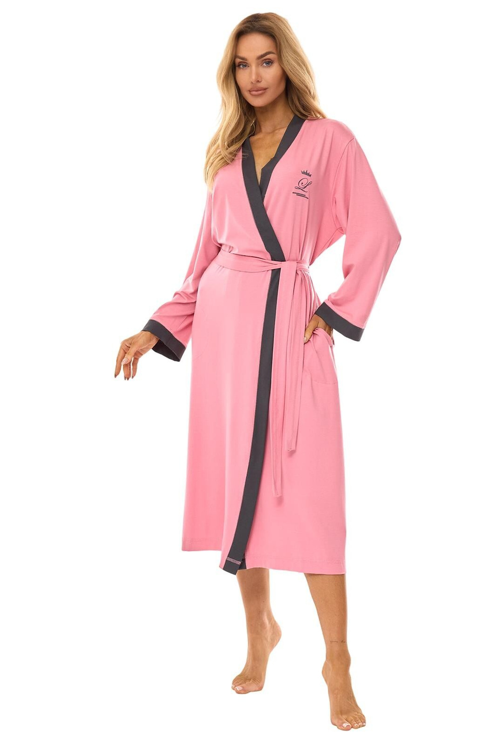 Szlafrok L&L 2505 długi M-2XL wiskoza damski różowy