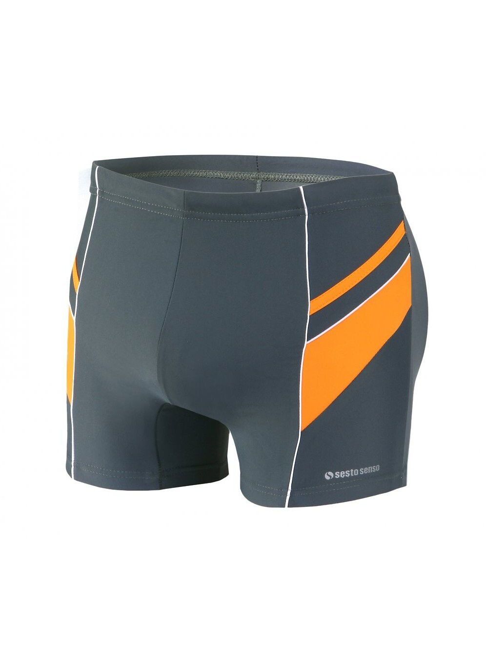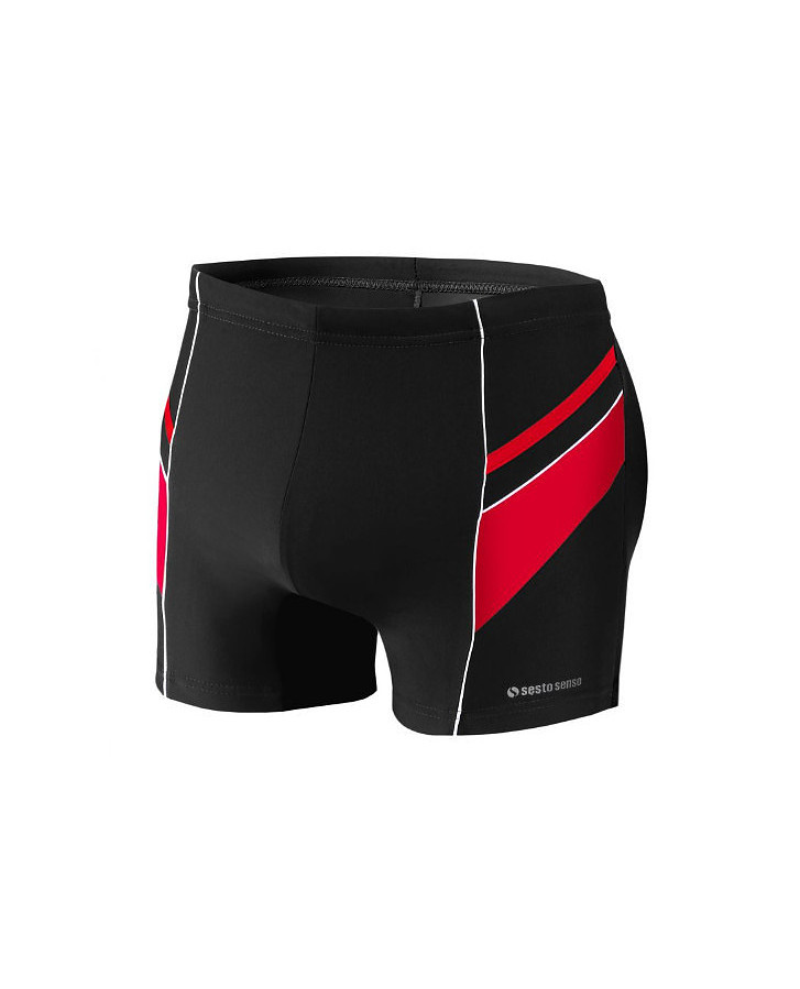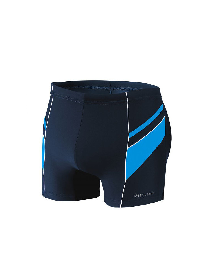 Bokserki kąpielowe z wysokiej jakości mikrofibry- zdobione kontrastującymi wstawkami po bokach- w pasie elastyczna gumka- od wewnętrznej strony sznureczek do regulacji obwodu- na nogawce mały nadruk logo Sesto Senso