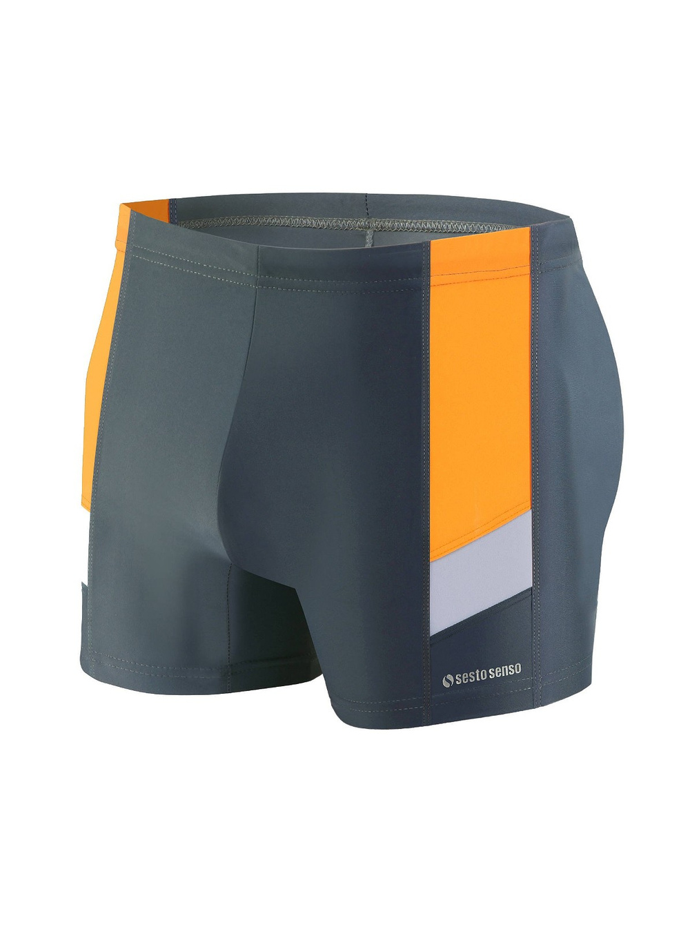 Bokserki kąpielowe- wykonane z wysokiej jakości mikrofibry- zdobione kontrastującymi wstawkami po bokach- w pasie elastyczna gumka, od wewnętrznej strony sznureczek do regulacji obwodu- na nogawce mały nadruk logo Sesto Senso