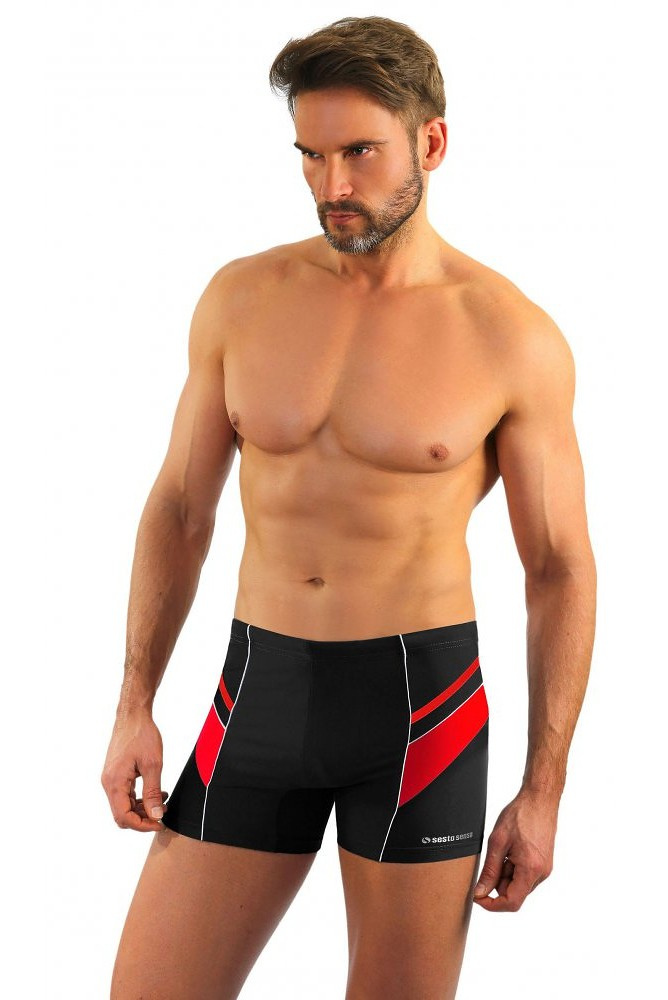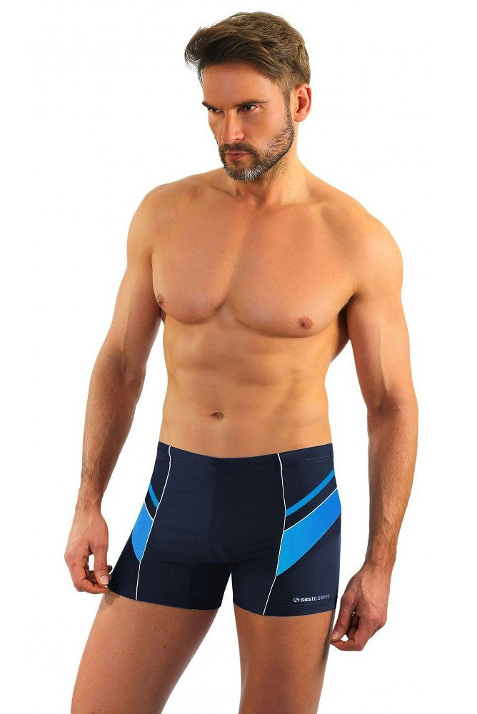 Bokserki kąpielowe- z wysokiej jakości mikrofibry, z kontrastującymi wstawkami- w pasie elastyczna gumka, od wewnętrznej strony sznureczek do regulacji obwodu- na nogawce mały nadruk logo Sesto Senso