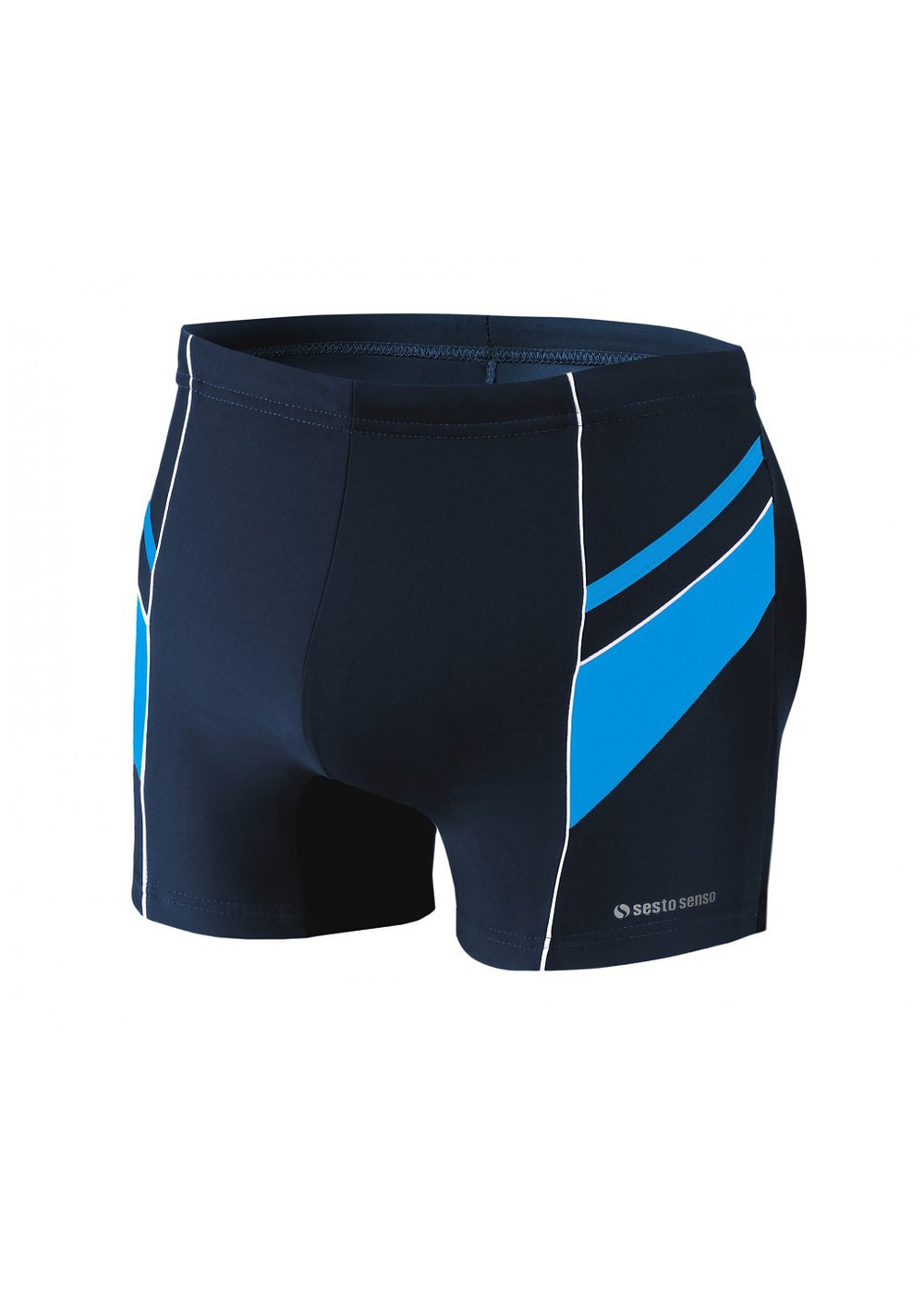 Bokserki kąpielowe- z wysokiej jakości mikrofibry, z kontrastującymi wstawkami- w pasie elastyczna gumka, od wewnętrznej strony sznureczek do regulacji obwodu- na nogawce mały nadruk logo Sesto Senso