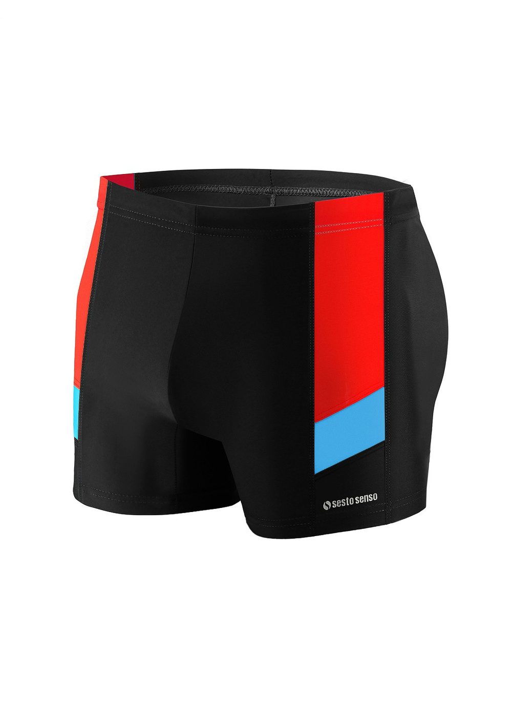 Bokserki kąpielowe- wykonane z wysokiej jakości mikrofibry- zdobione kontrastującymi wstawkami po bokach- w pasie elastyczna gumka, od wewnętrznej strony sznureczek do regulacji obwodu- na nogawce mały nadruk logo Sesto Senso