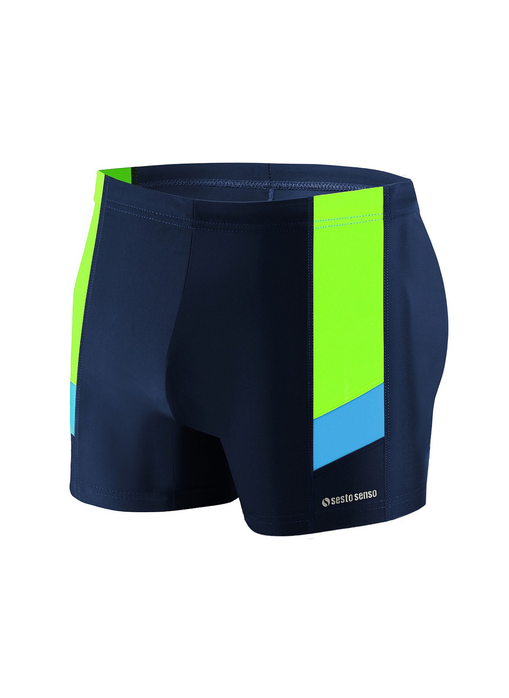 Bokserki kąpielowe- wykonane z wysokiej jakości mikrofibry- zdobione kontrastującymi wstawkami po bokach- w pasie elastyczna gumka, od wewnętrznej strony sznureczek do regulacji obwodu- na nogawce mały nadruk logo Sesto Senso