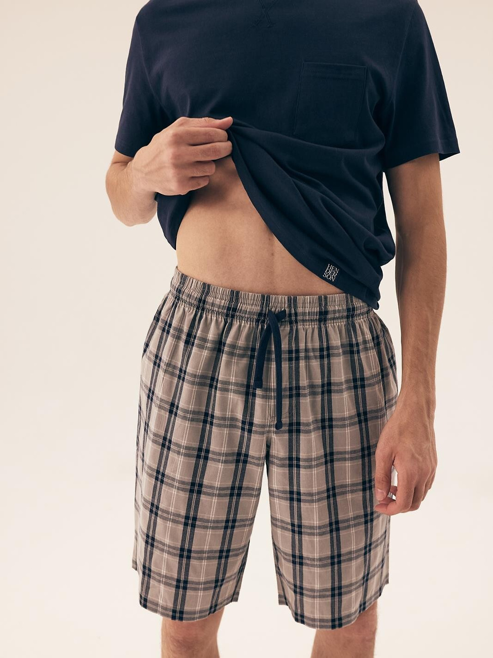 - spodnie z cienkiej tkaniny bawełnianej w kratkę