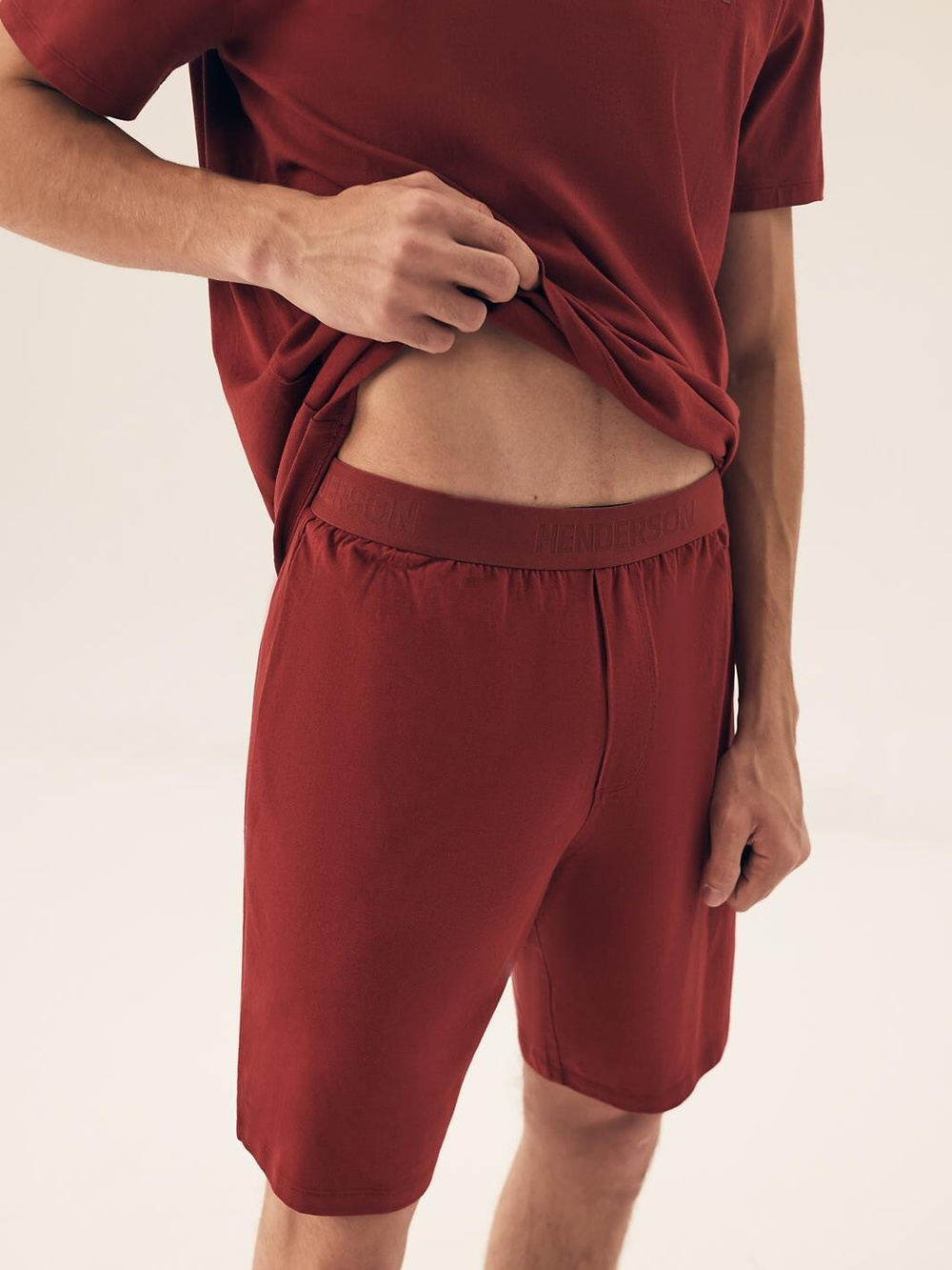 - w pasie elastyczna gumka z napisem Henderson