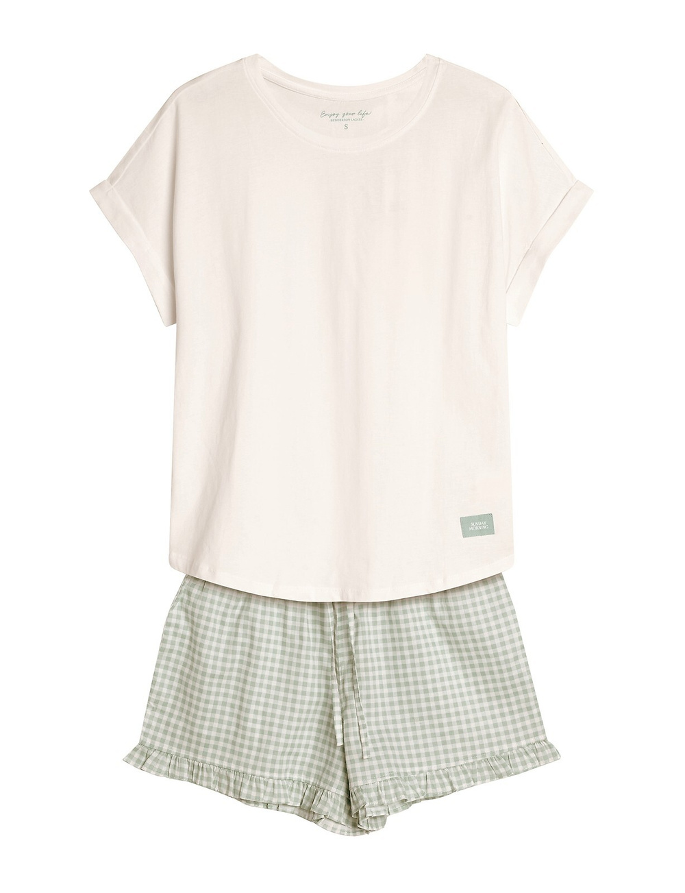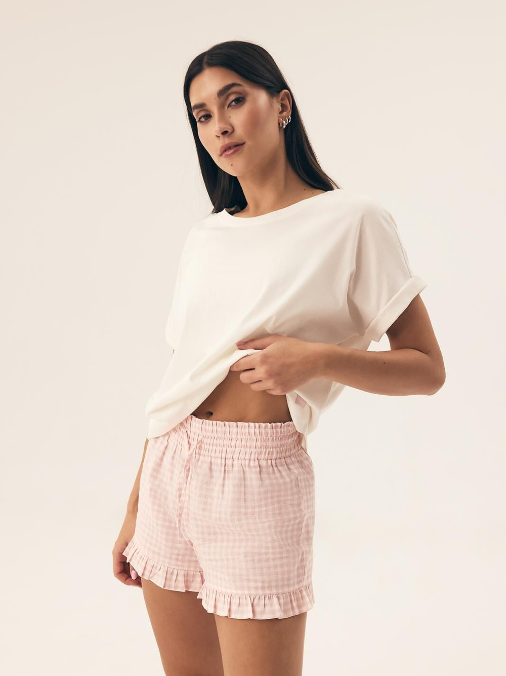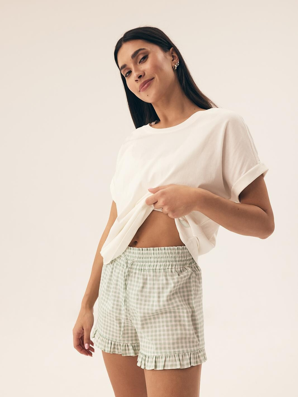 - do kompletu krótkie spodenki z tkaniny w kratkę