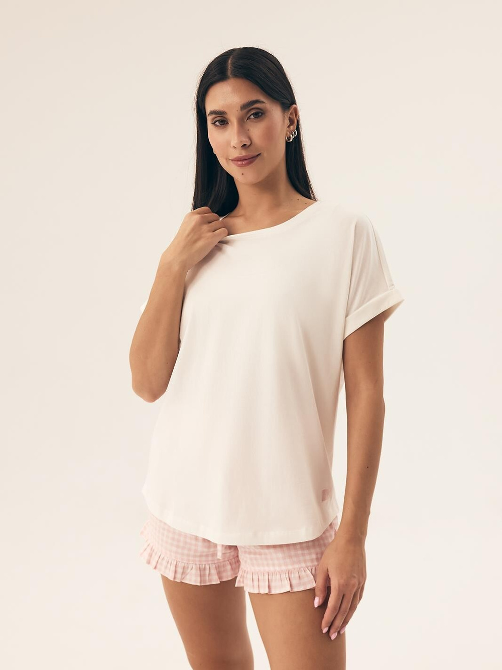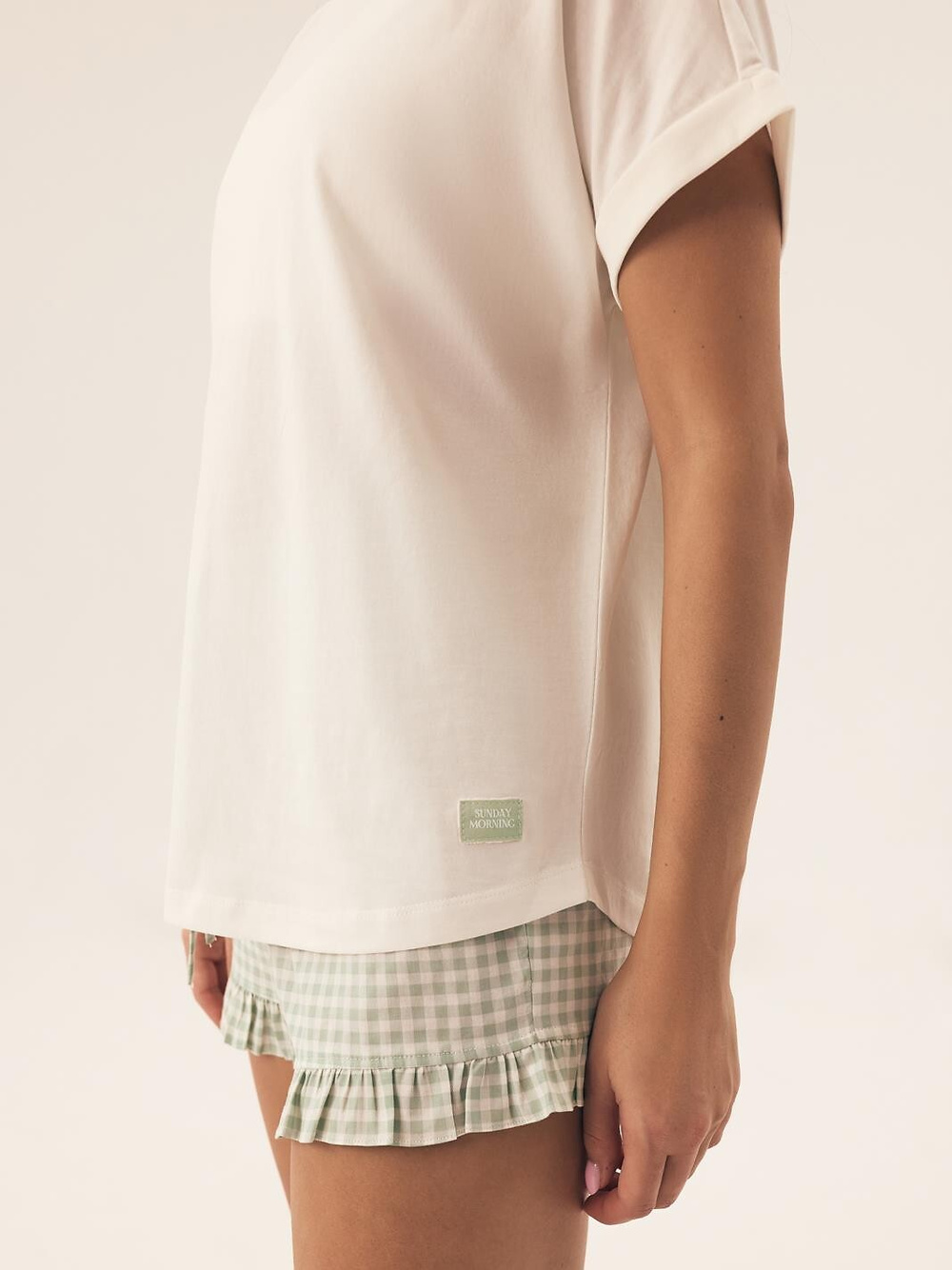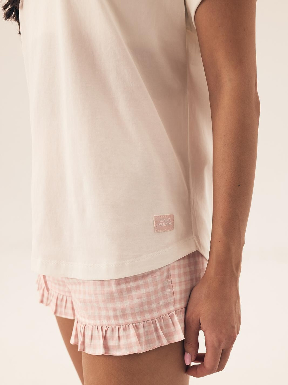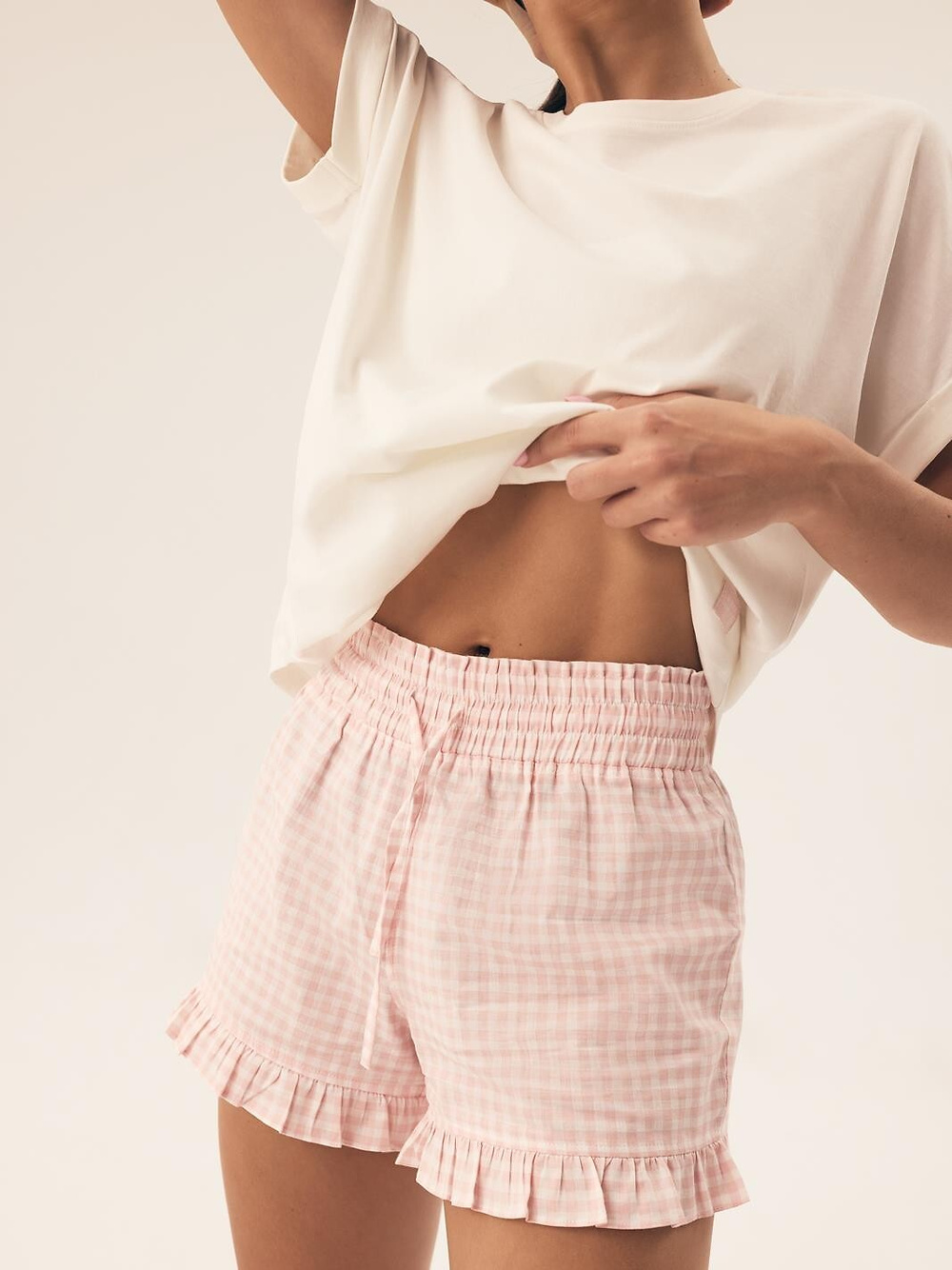 - do kompletu krótkie spodenki z tkaniny w kratkę