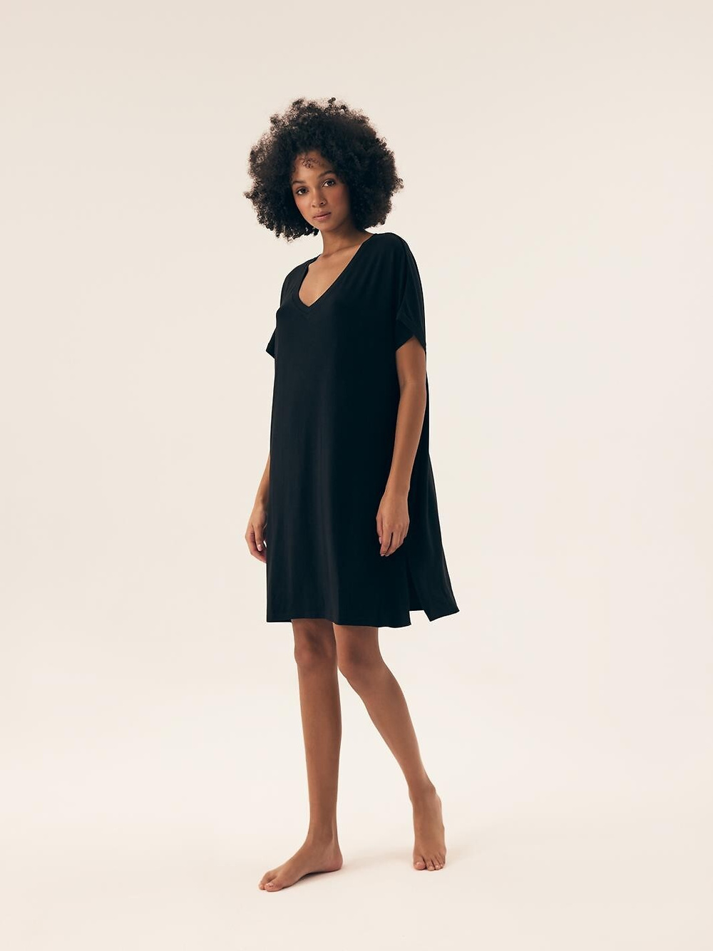 Koszula damska - wysokiej jakości wiskoza - krótki rękaw - dekolt w kształcie litery "V" - u dołu rozcięcia - luźny, swobodny fason - krój typu oversize Skład: 95% wiskoza, 5% elastan