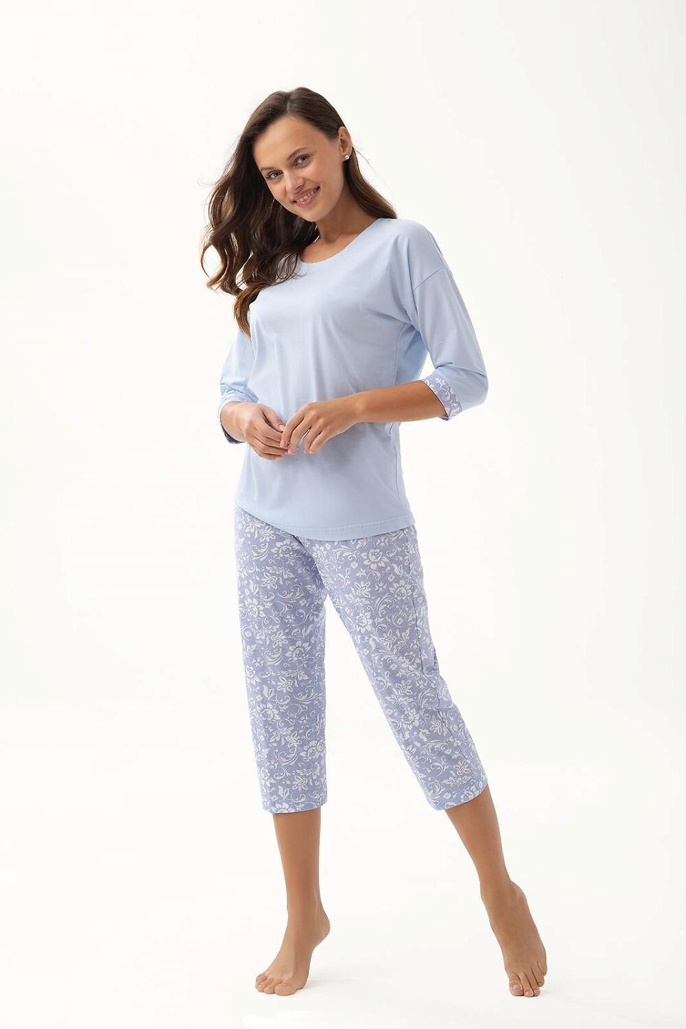Piżama Luna 343 3/4 M-2XL damska niebieski-łososiowy