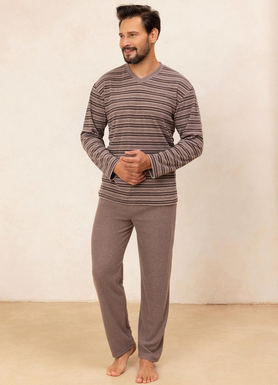 Piżama Regina 490 dł/r 2XL Z26 męska frotte brązowy