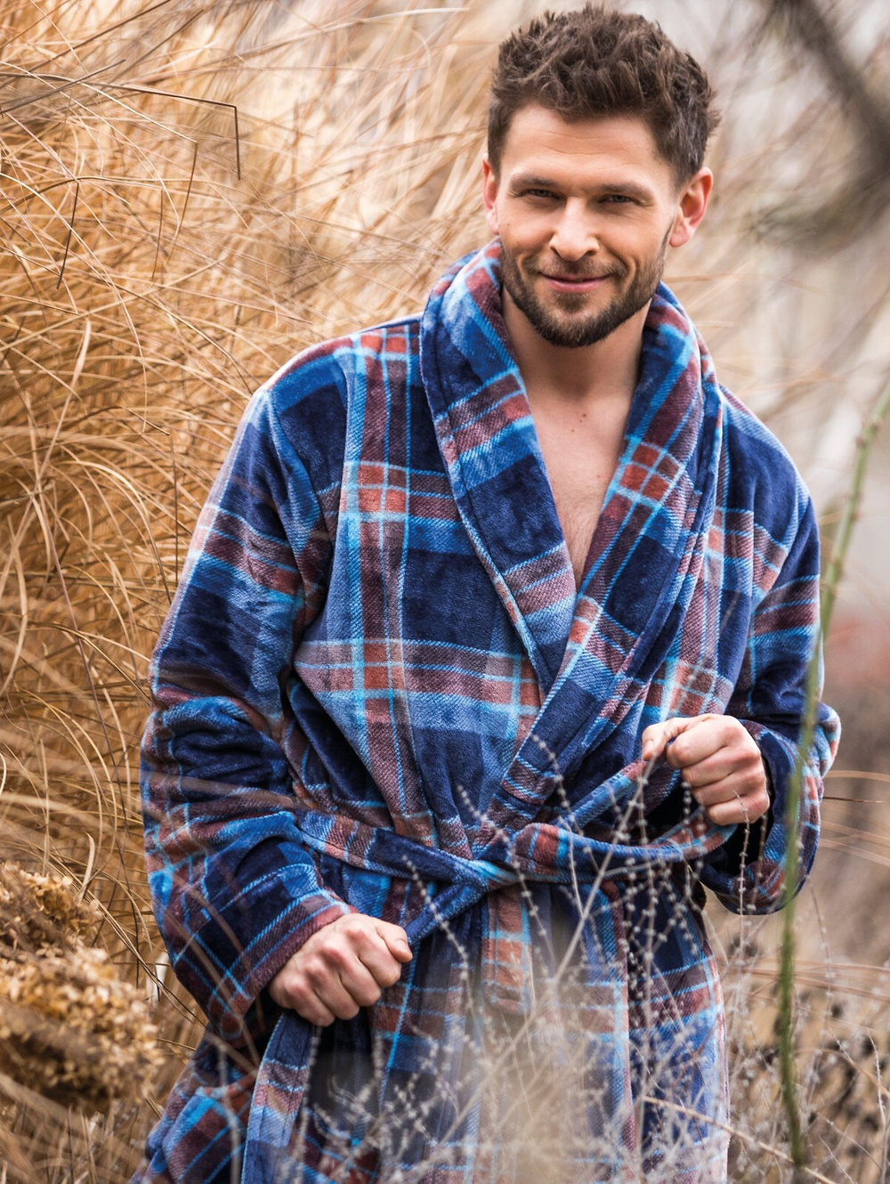 Szlafrok Key MGL 431 B25 M-2XL jeans-kratka