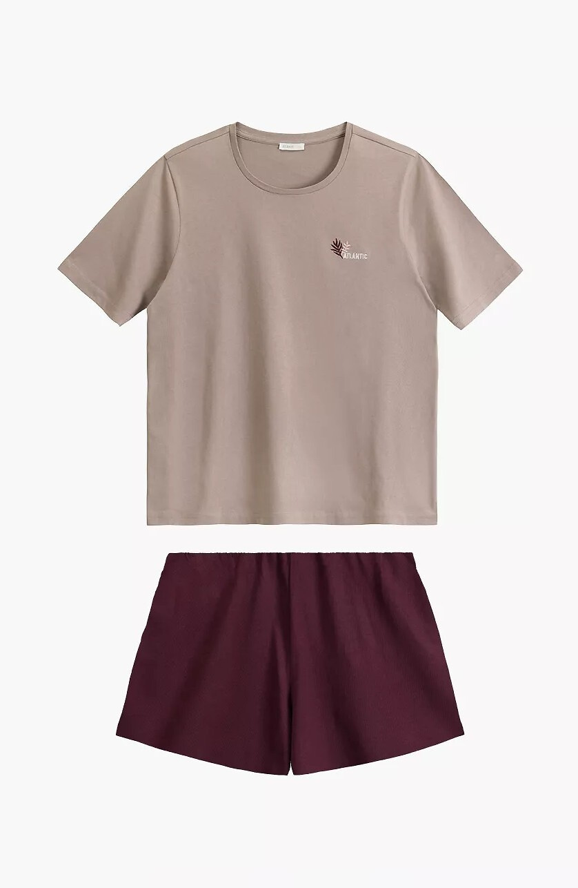 Piżama Atlantic NLP-498E kr/r S-2XL beżowy-wino