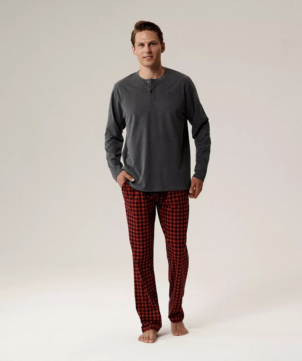 Piżama Atlantic NMP-394 dł/r S-2XL wino-szary