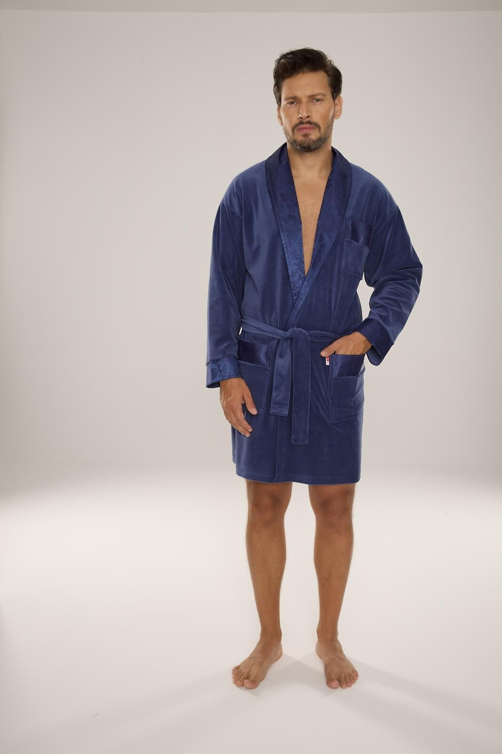 Szlafrok De Lafense 866 Noble M-2XL męski jeans Krótki szlafrok męski