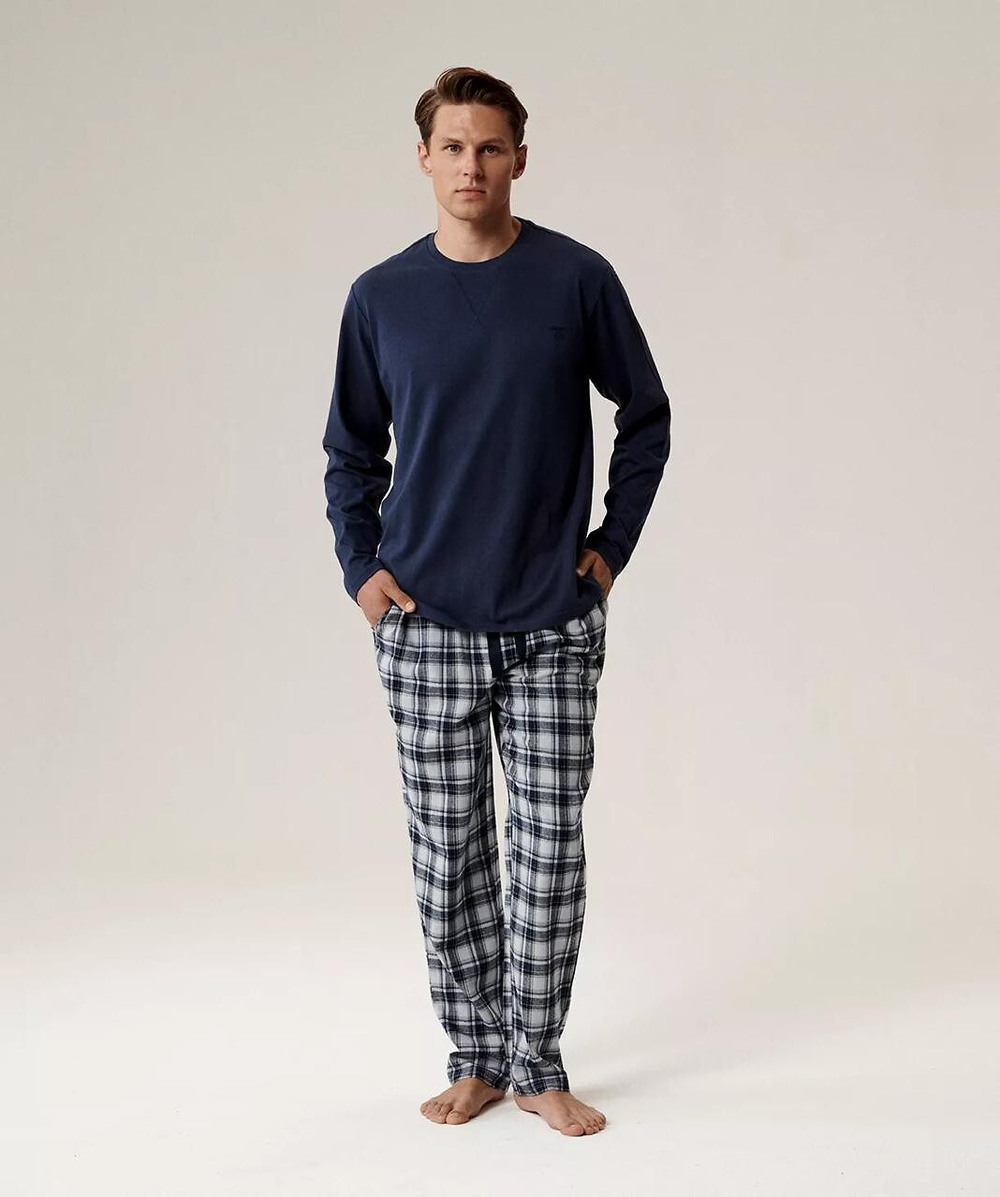 Piżama Atlantic NMP-393 dł/r S-2XL męska granatowy-szary