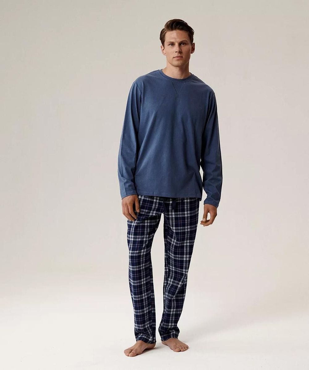 Piżama Atlantic NMP-393 dł/r S-2XL męska niebieski-niebieski ciemny