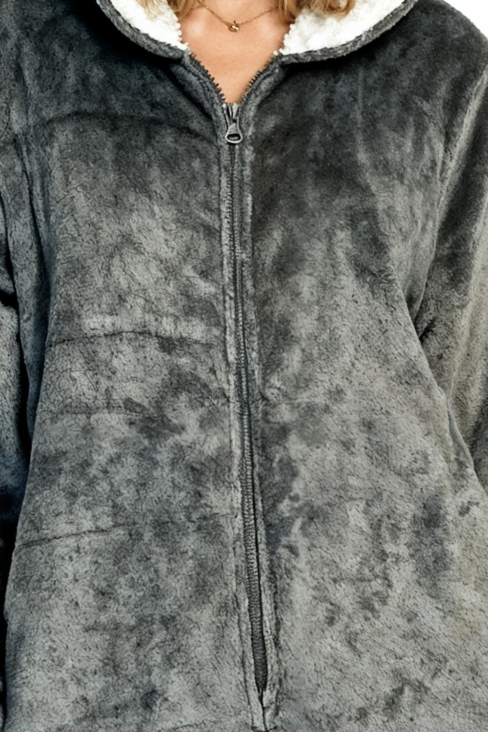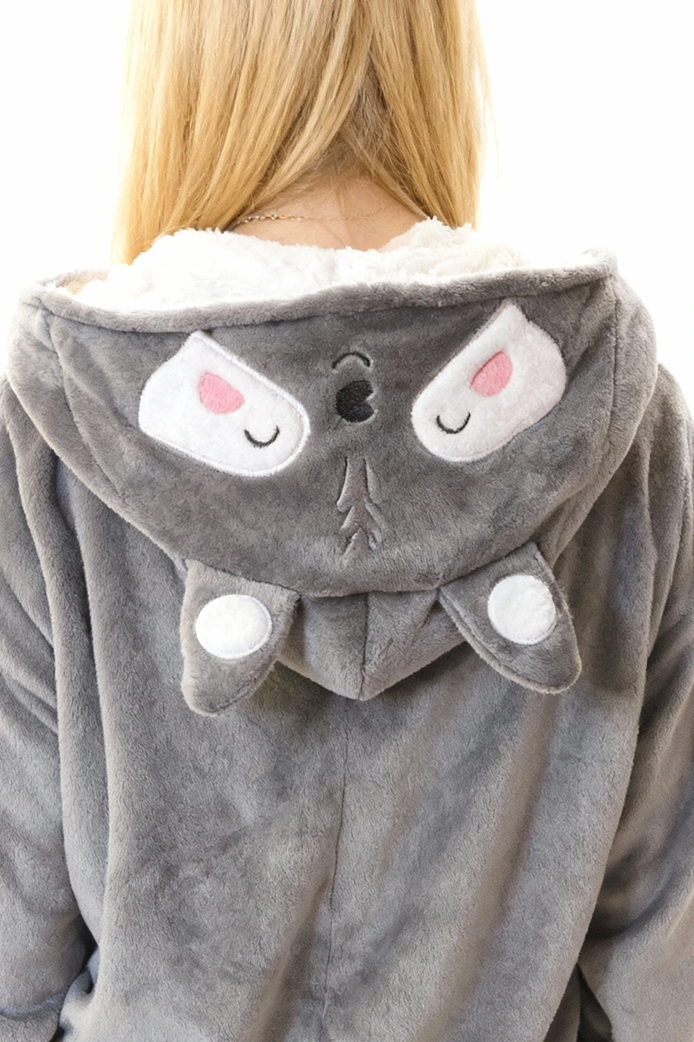 Ciepły kombinezon welurowy z haftowanym kapturem BORSUK, szary